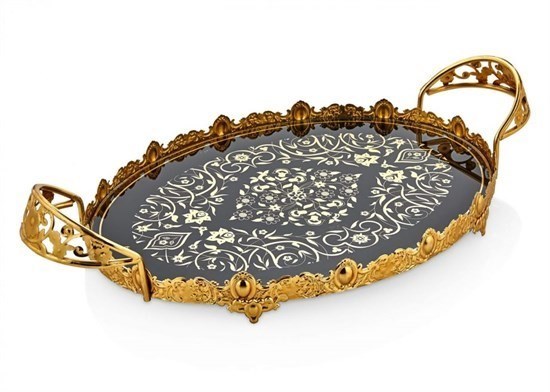 Werony Altın/Gümüş Yaldızlı Oval Tepsi 25x35cm - 30457