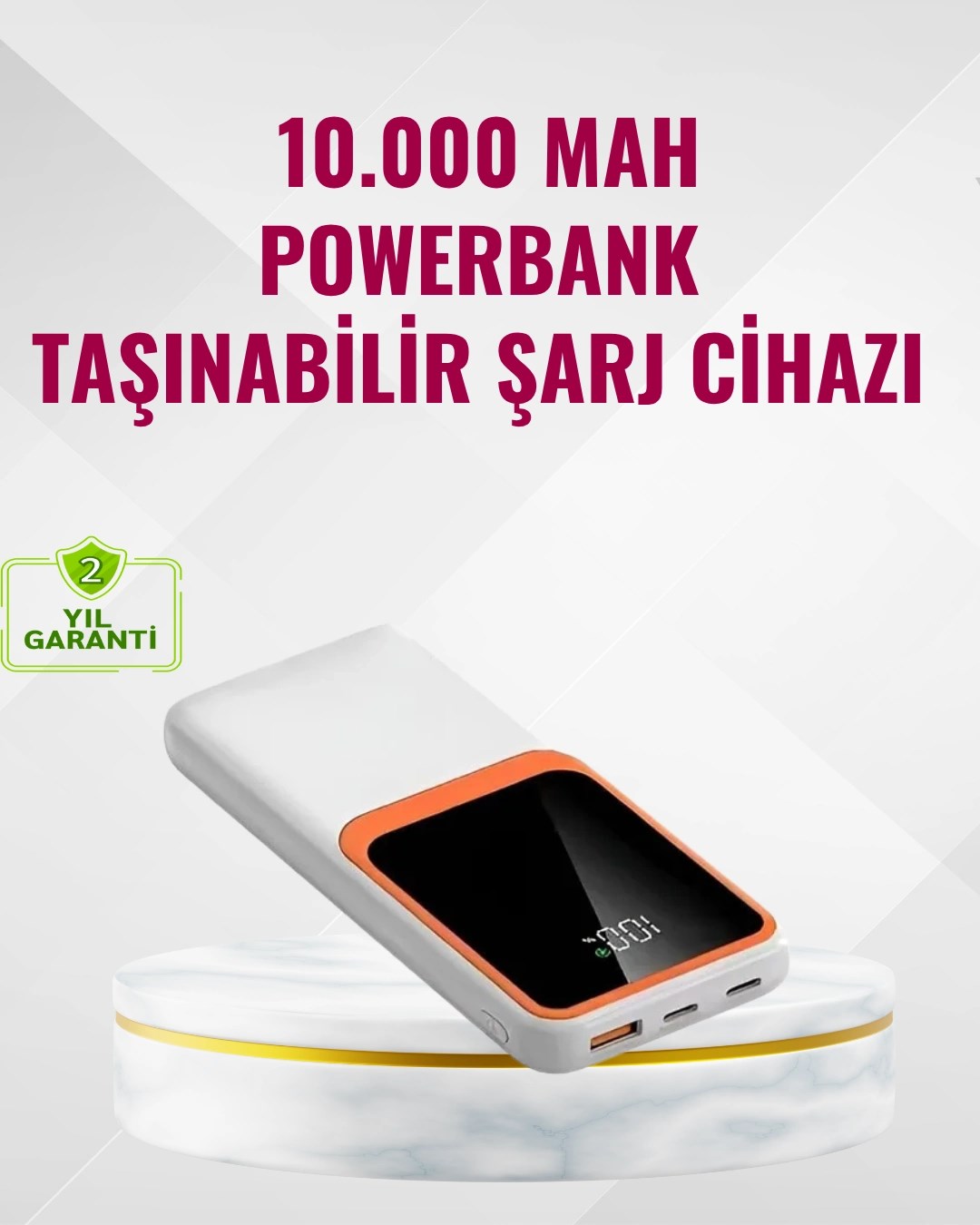 Powerbank 10000 Mah – Çift Usb Çıkışlı, Type-c Girişli, Şık Beyaz Tasarım