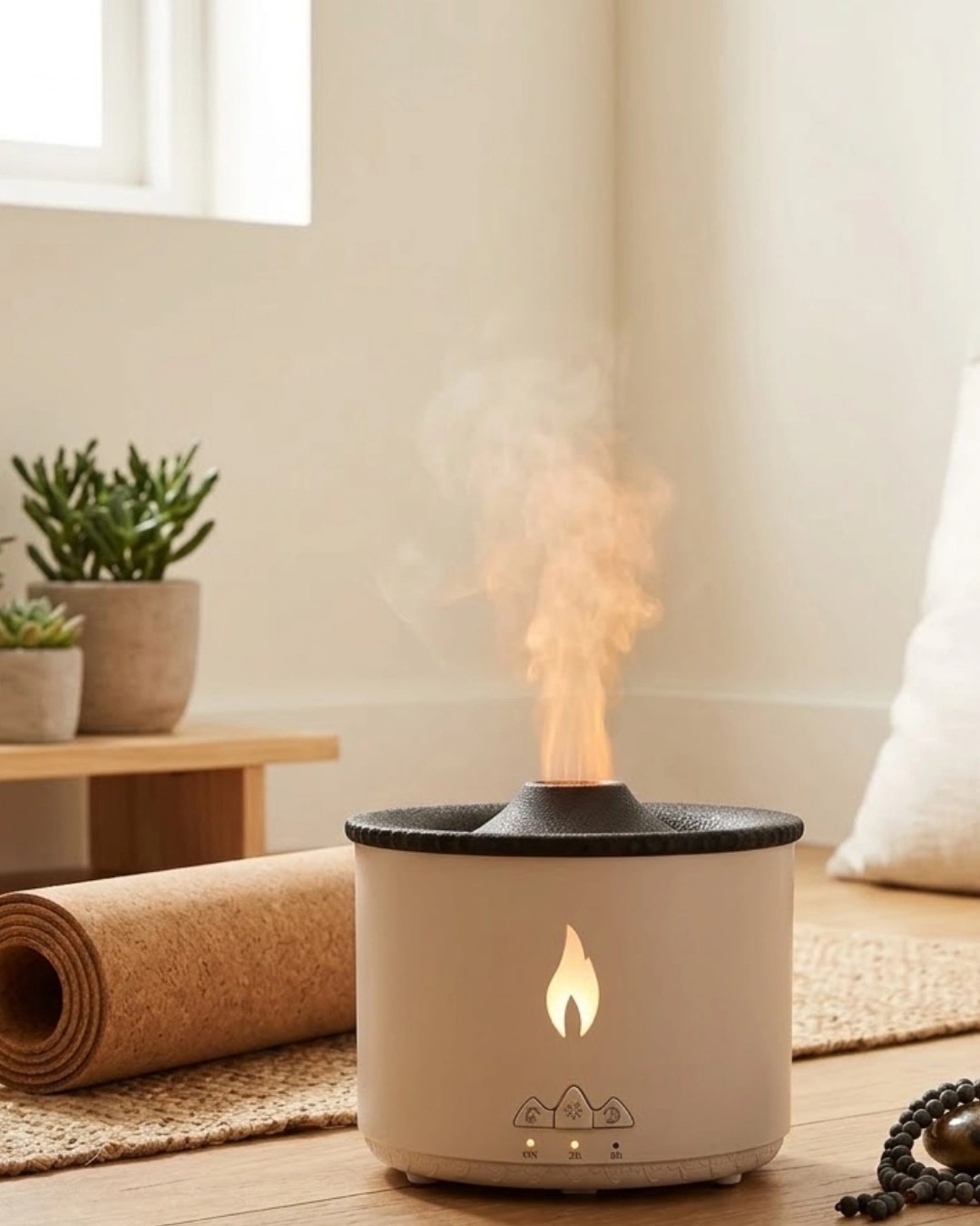 Aromaterapi Difüzörü Alev Efektli Led Işıklı Sessiz Hava Nemlendirici Otomatik Kapanma