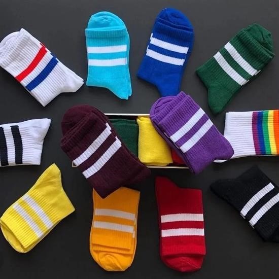 12'li Canlı Renkler Çizgili Çorap Kutusu 9-11 Yaş