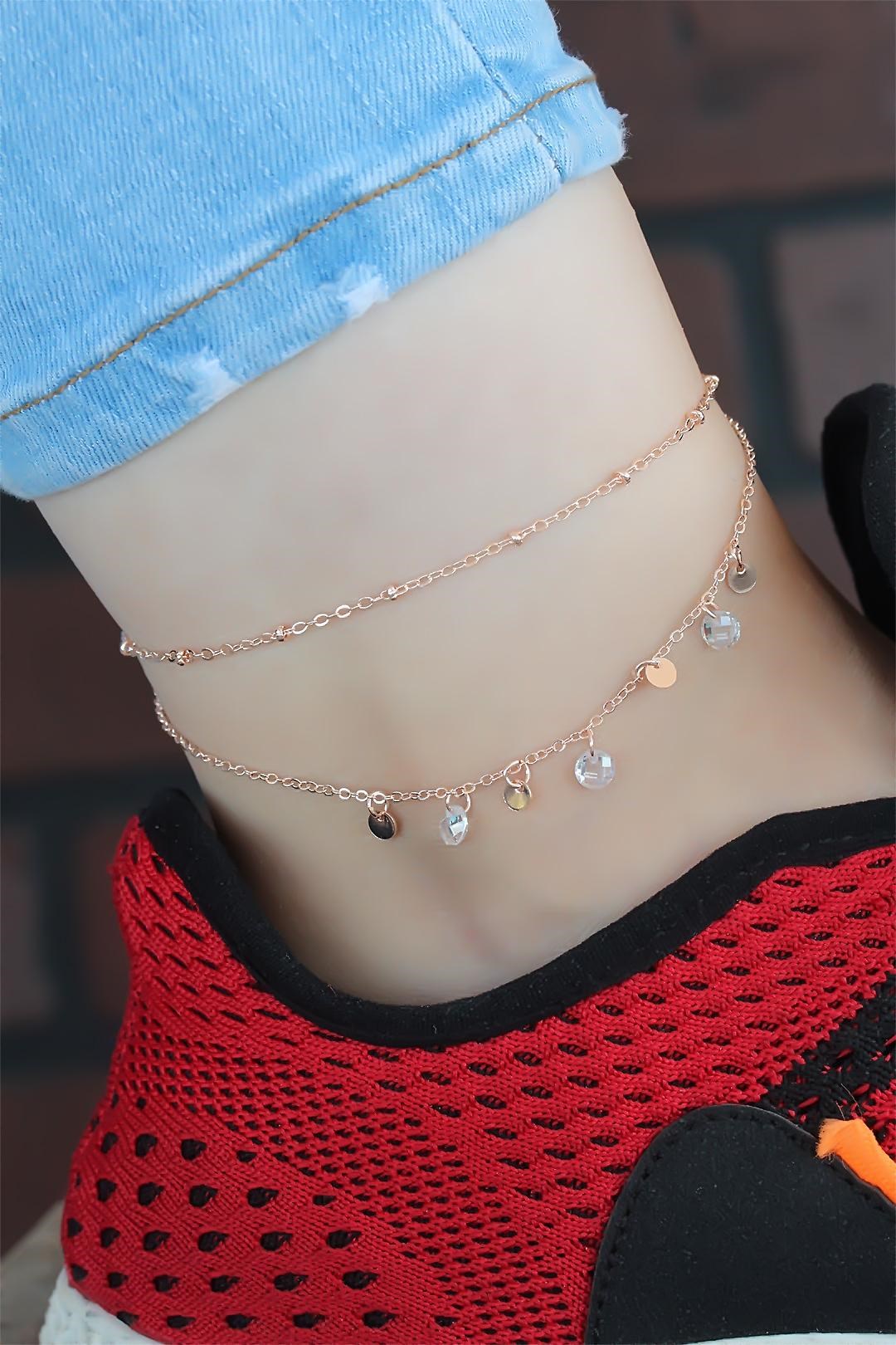 Zirkon Taşlı Rose Renk Çift Zincirli Hal Hal