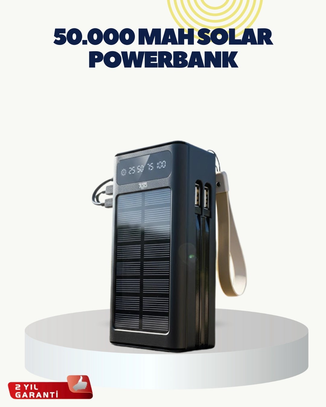 Led Aydınlatmalı Güneş Panelli Powerbank Seyahat Ve Kamp İçin
