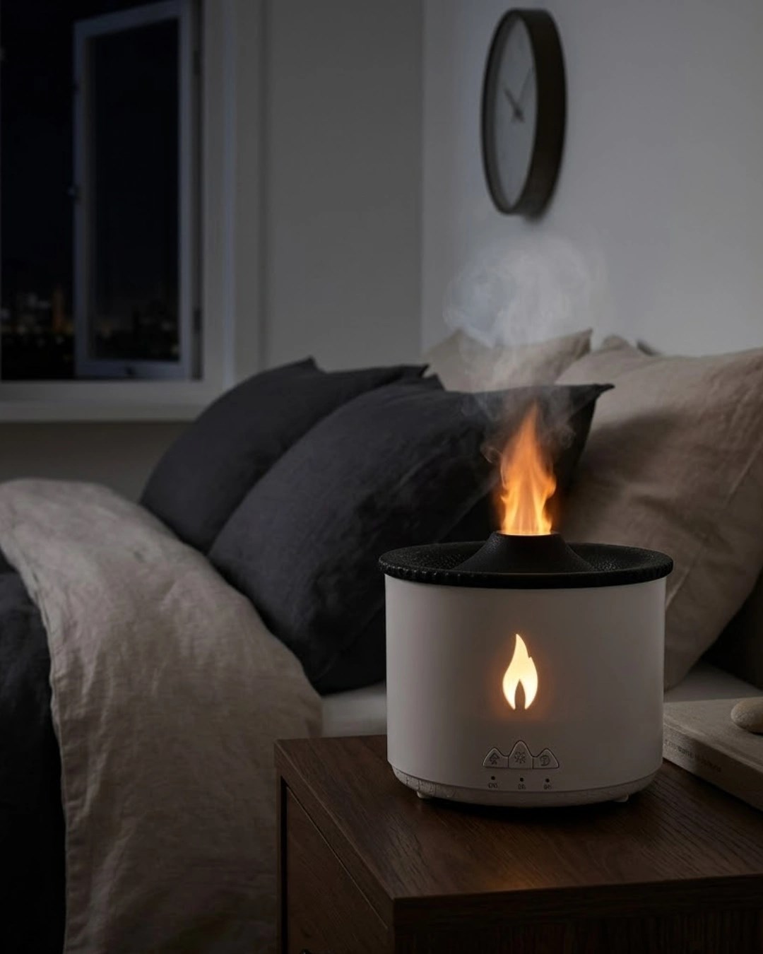 Alev Ve Volkan Efektli Ultrasonik Aroma Difüzörü Led Gece Lambalı Hava Nemlendirici