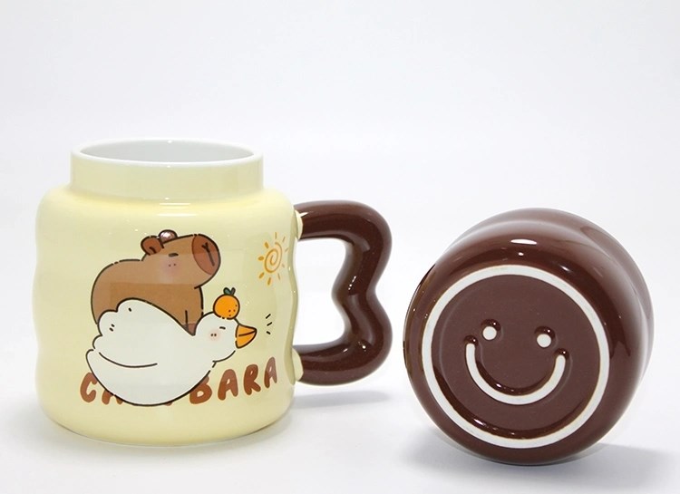 Capybara Tasarımlı Isı Muhafazalı Kapaklı Porselen Bardak Bardak Alk5043