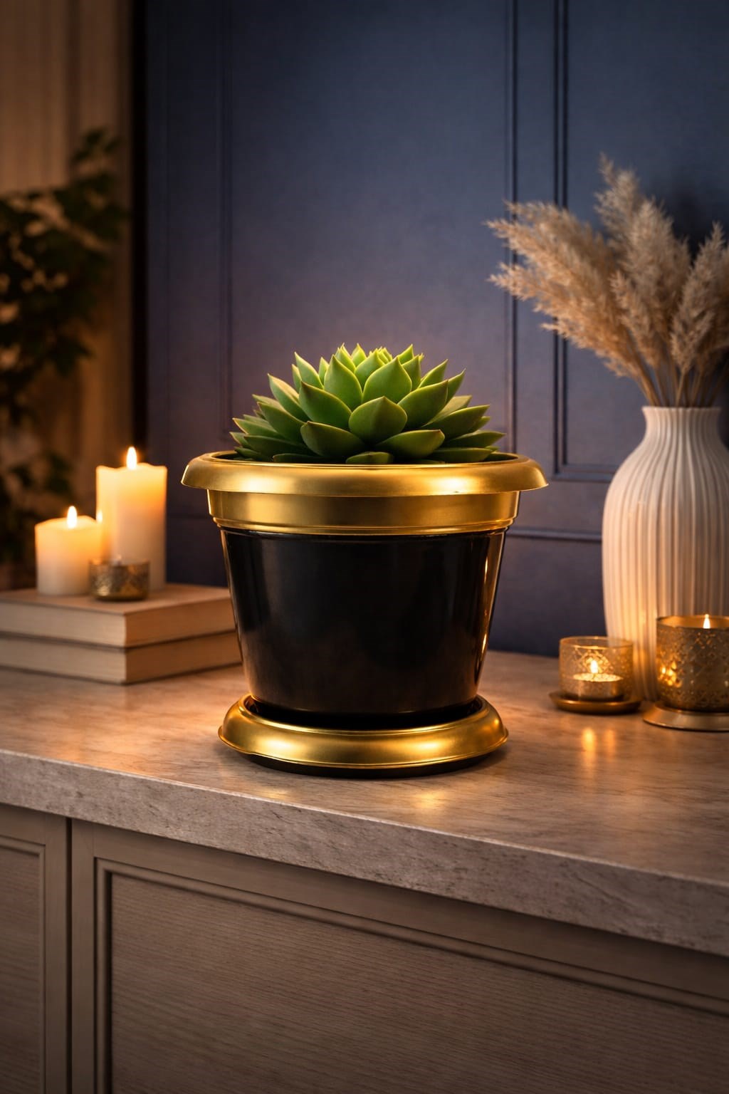 NF Gold Bilezikli 1,7 Litre Dekoratif Plastik saksı Siyah