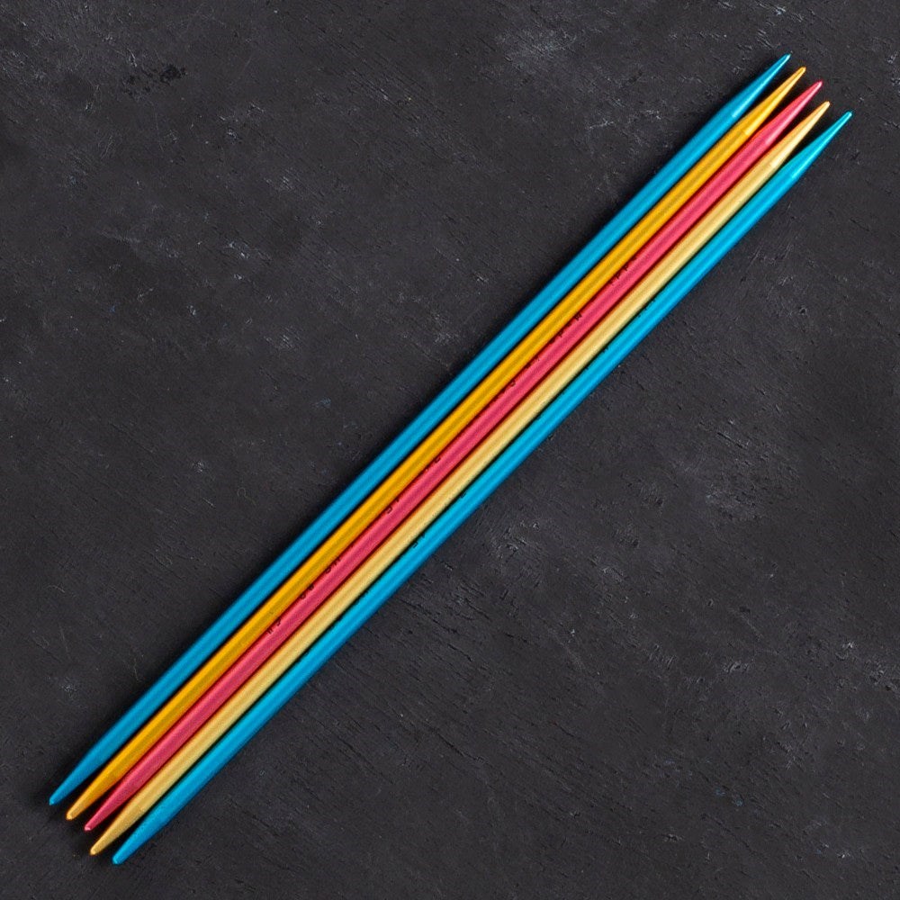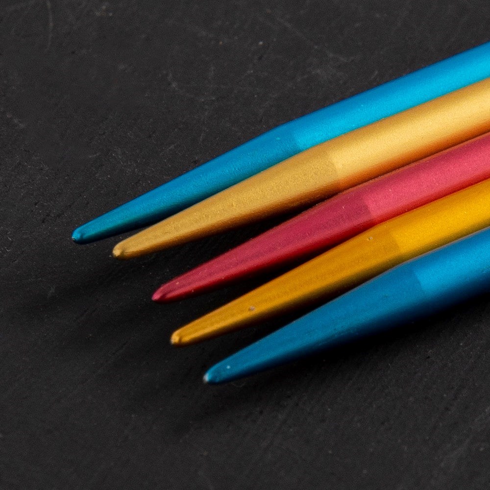 Addi Colibris çorap şişlerinin bir ucu sivri, diğer ucu daha küttür.