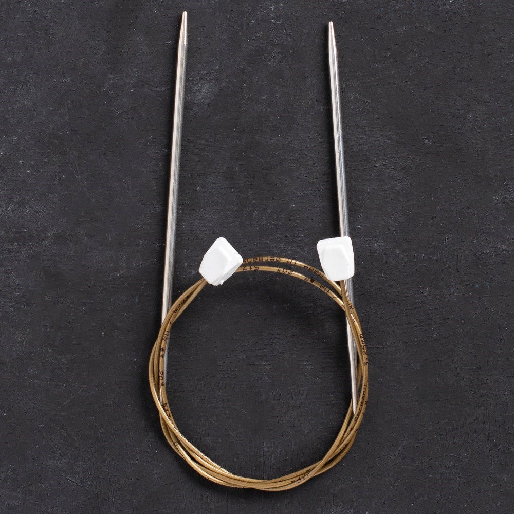 Klasik düz örgü şişi yerine esnek kordonlu düz örgü şişi kullanarak büyük projelerde daha kolay örebilirsiniz. Ayrıca misinalı şişlerdeki sürekli kendi kendine dönmesi gibi problemlerden de kurtulmuş olursunuz.