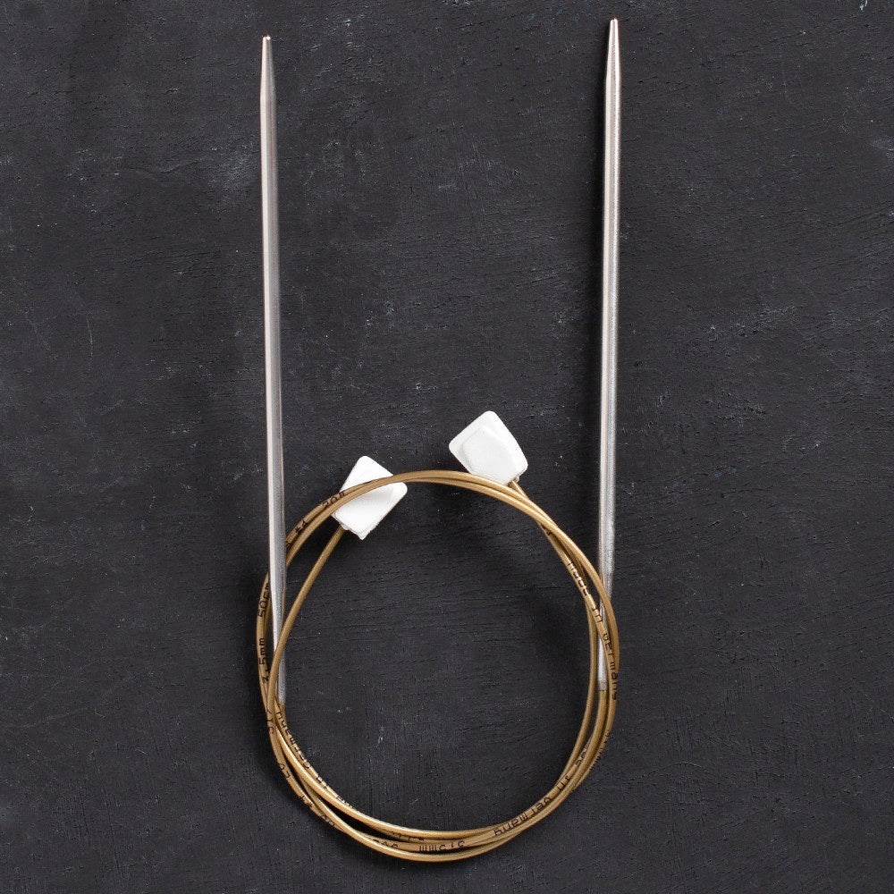 Klasik düz örgü şişi yerine esnek kordonlu düz örgü şişi kullanarak büyük projelerde daha kolay örebilirsiniz. Ayrıca misinalı şişlerdeki sürekli kendi kendine dönmesi gibi problemlerden de kurtulmuş olursunuz.