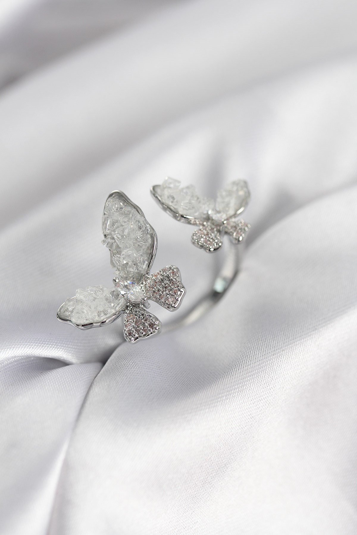 Gümüş Renk Beyaz Kelebek Model Zirkon Taşlı Kadın Yüzük