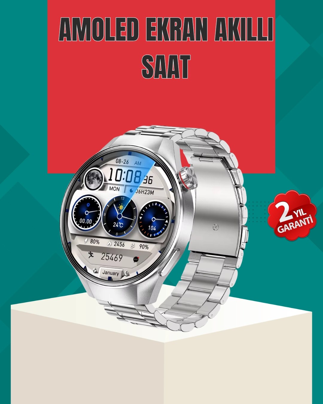Metal Gövdeli Amoled Akıllı Saat – Kan Oksijen, Nabız Ve Arama Fonksiyonlu