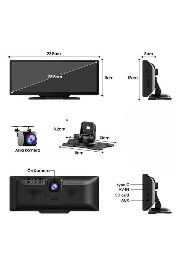 Araç Dvr Kamera Çift Lensli 4 İnç Ekranlı G Sensörlü