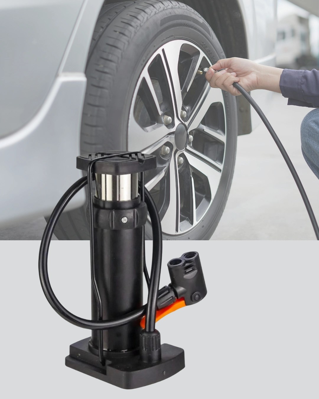 BUFFER® Basınç Göstergeli Ayak Pompası Araba Bisiklet Motor Lastik Pompası