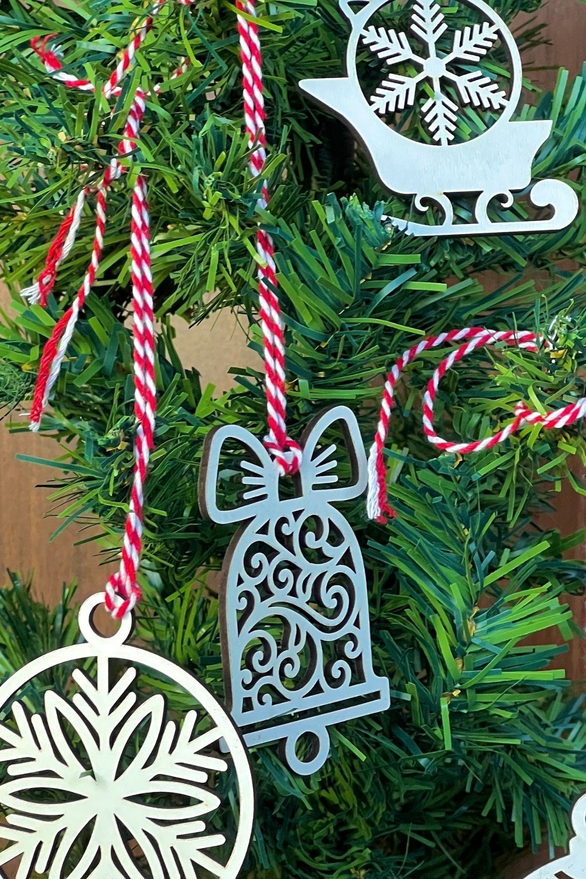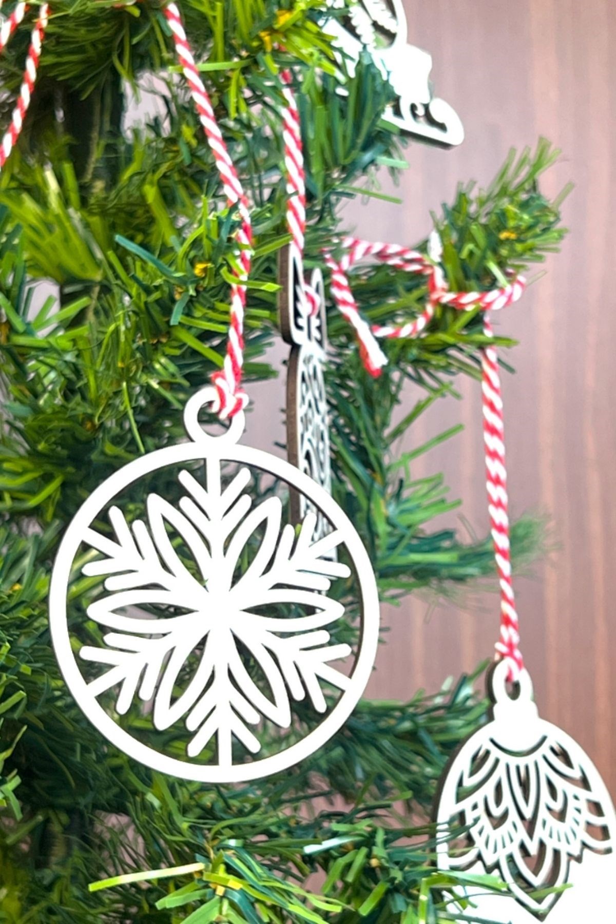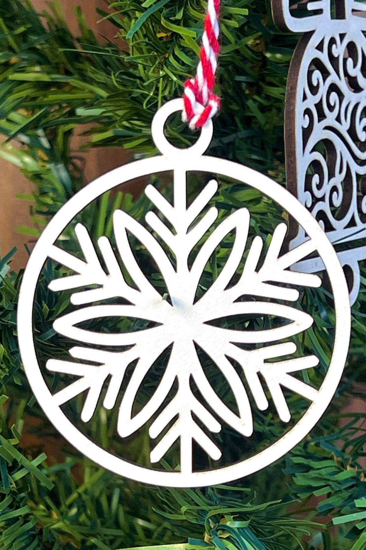 10 Parça Kırmızı Beyaz İpli Karışık Model Ahşap Yılbaşı Ağaç Süsü 🎄✨