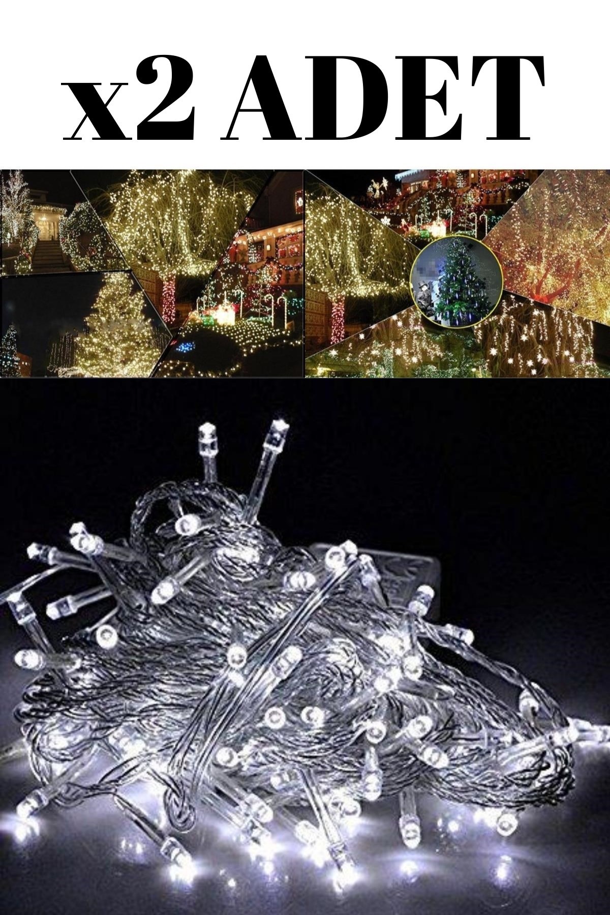 BUFFER® 100 Ledli 8 Fonksiyonlu 10 Metre Led Aydınlatma Dekor Lambası (beyaz)