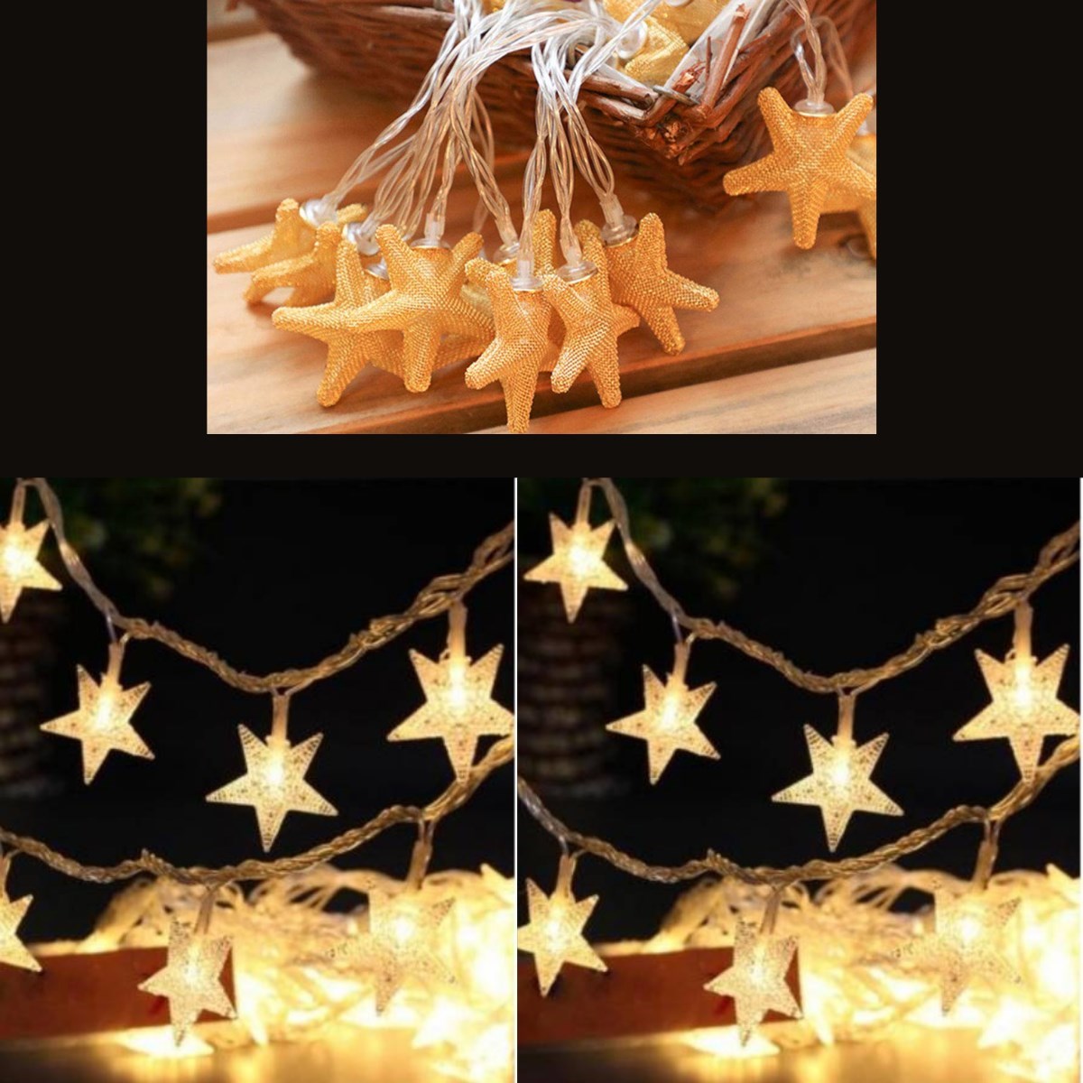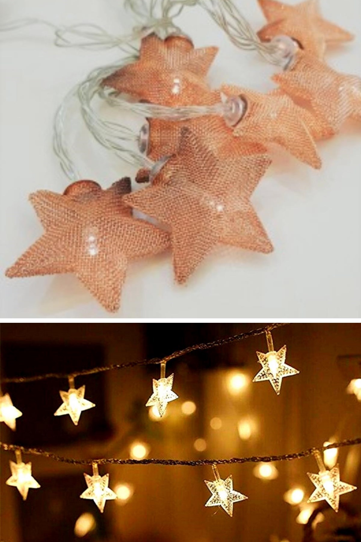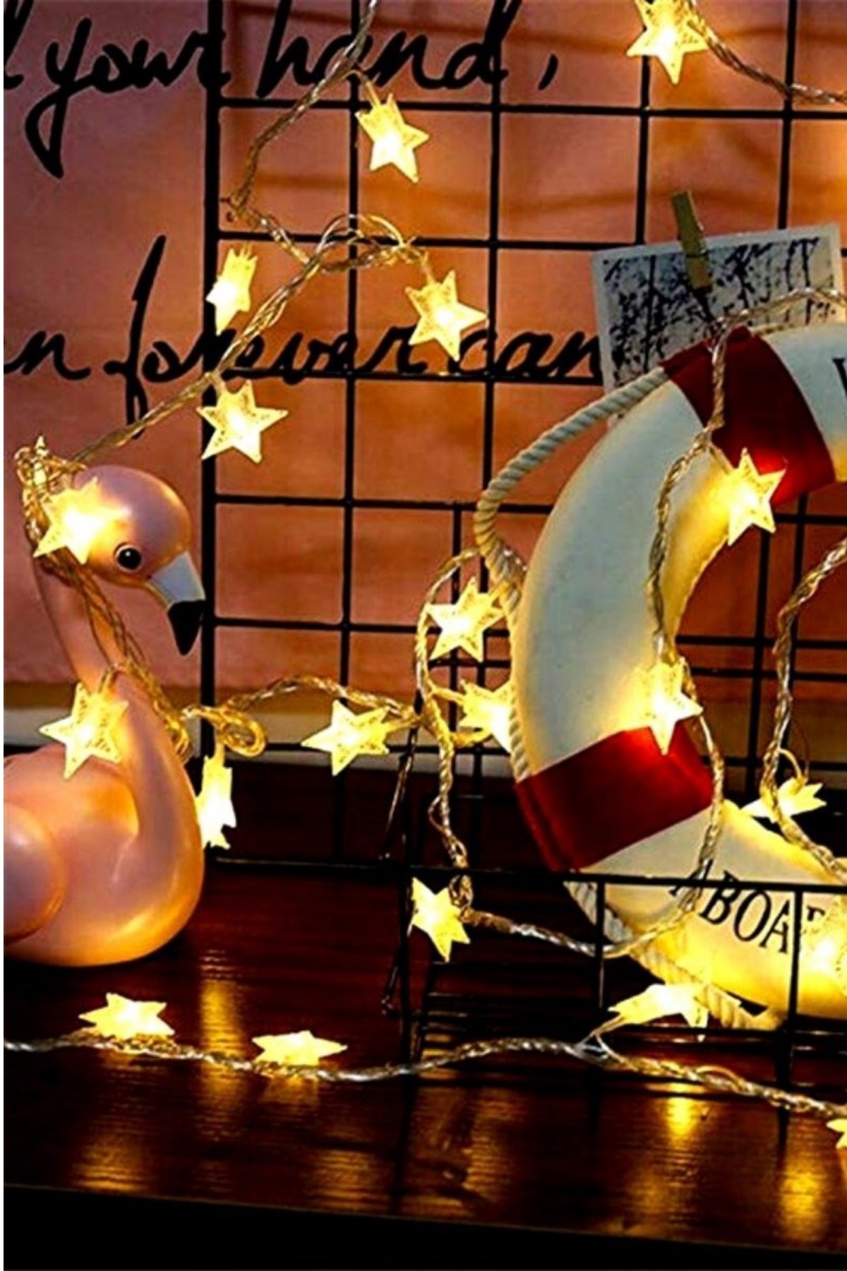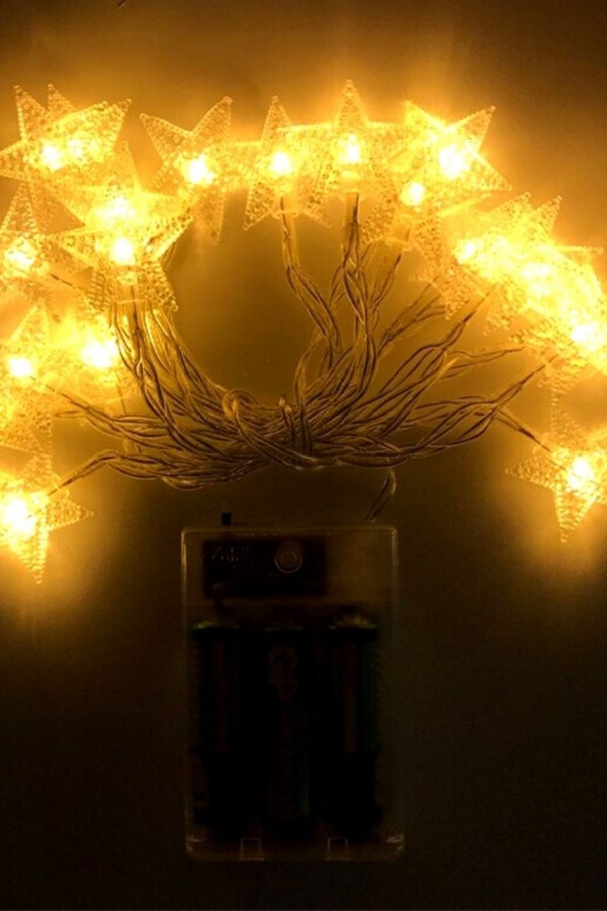 BUFFER® 10lu Rose Gold Yıldız Metal Yılbaşı Süs Dekoratif Pilli Led Işık Aydınlatma