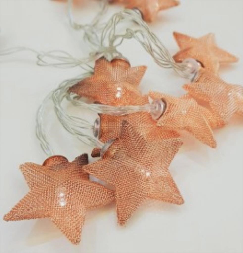dekoratif led süsleme, 10'lu Rose Gold Yıldız Metal Led Işık