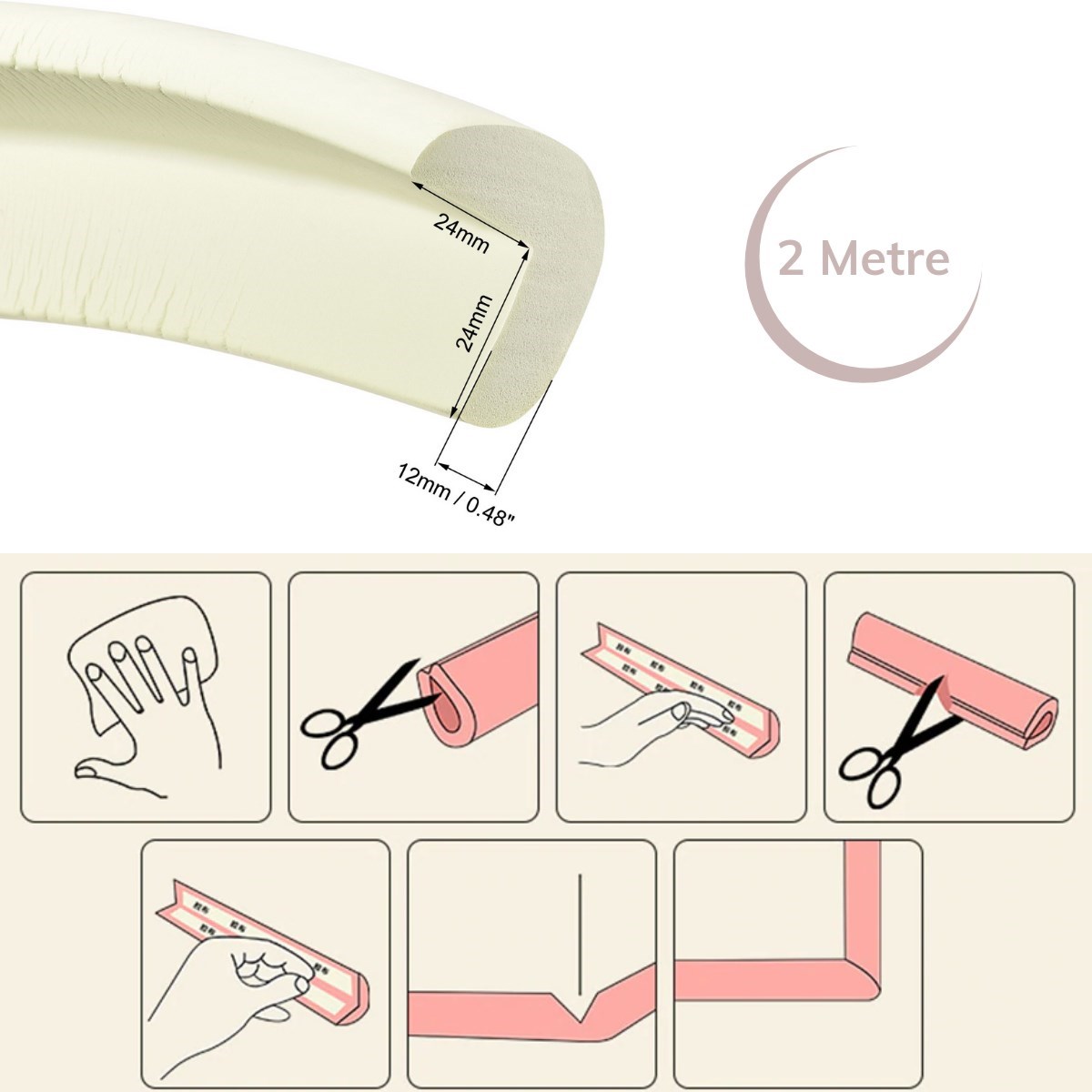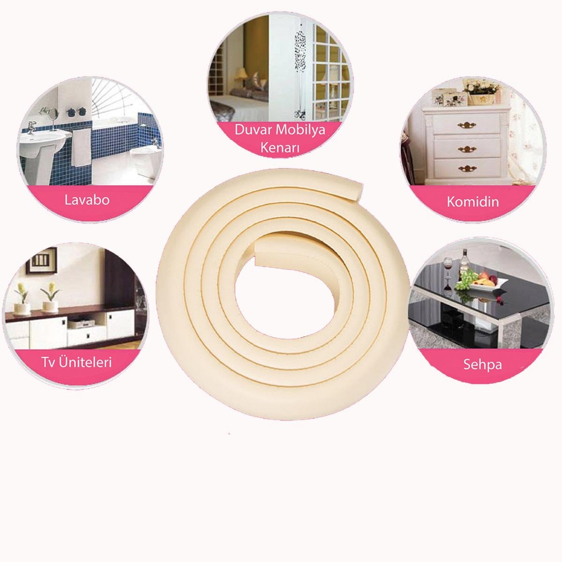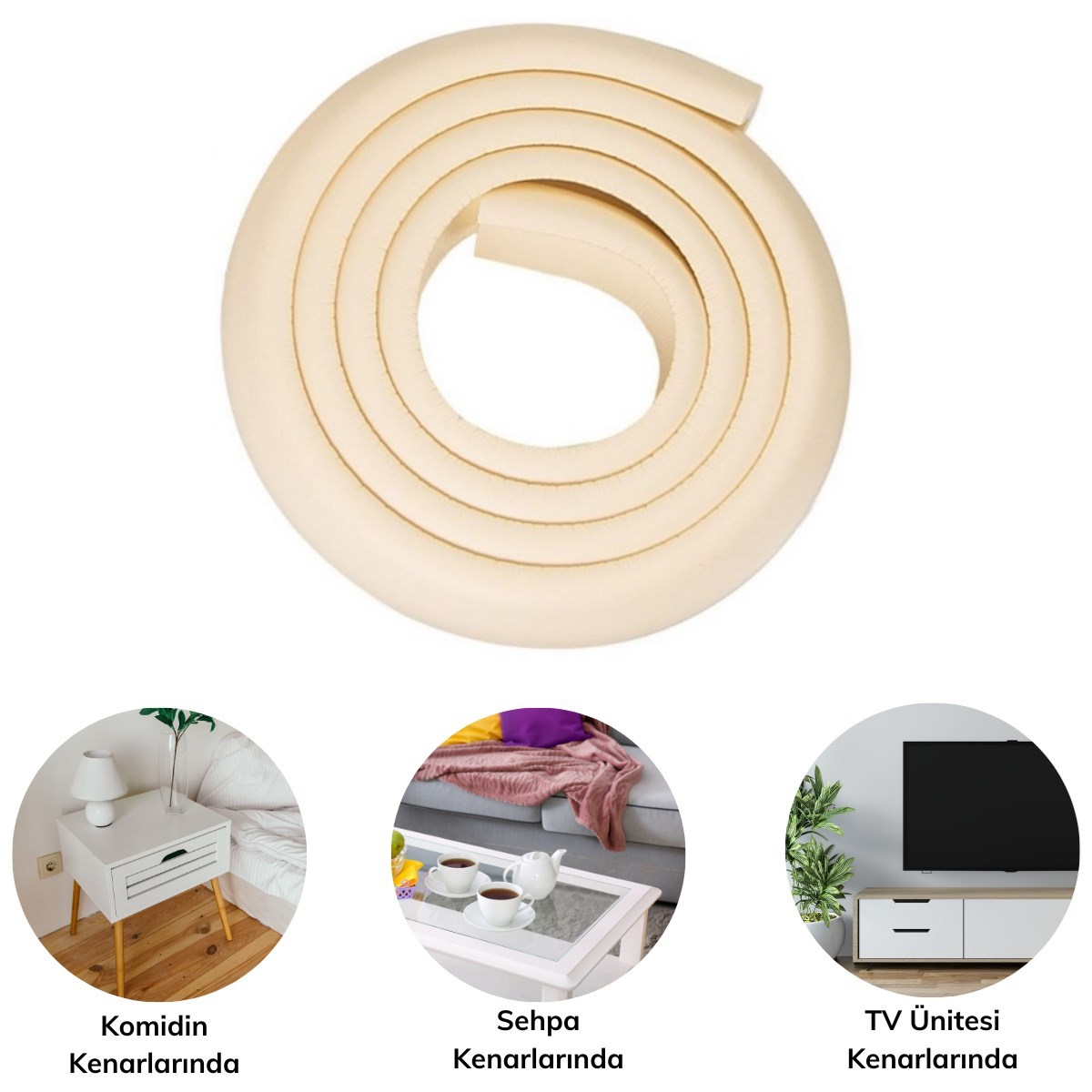 1 adet x 2 Metre Sarmal Krem Masa Kenar Koruyucu Şerit Masa Köşe Aparatı Bebek Çocuk Cam Ahşap Masa