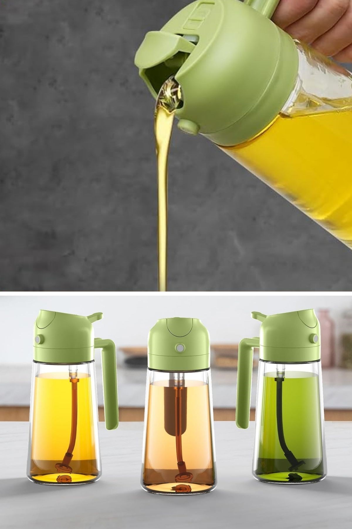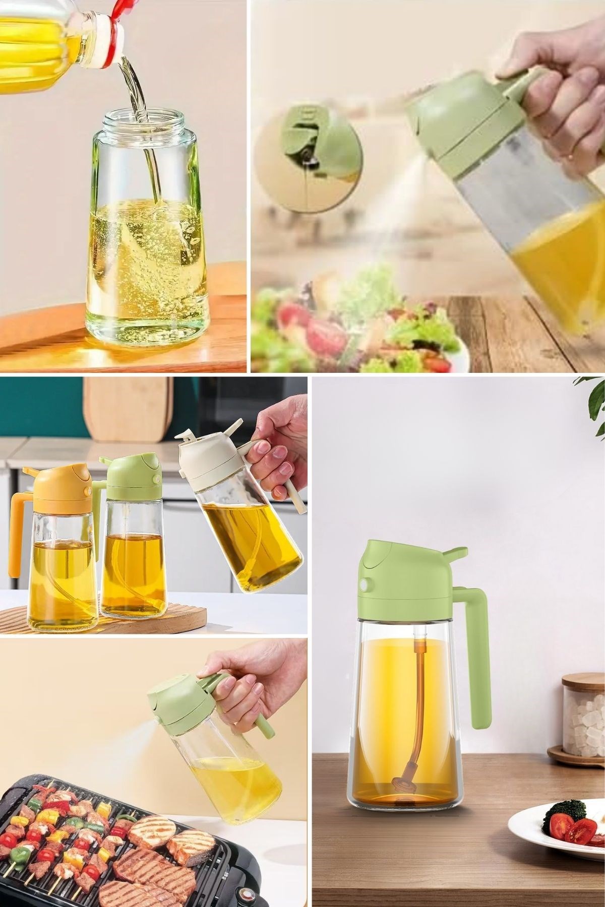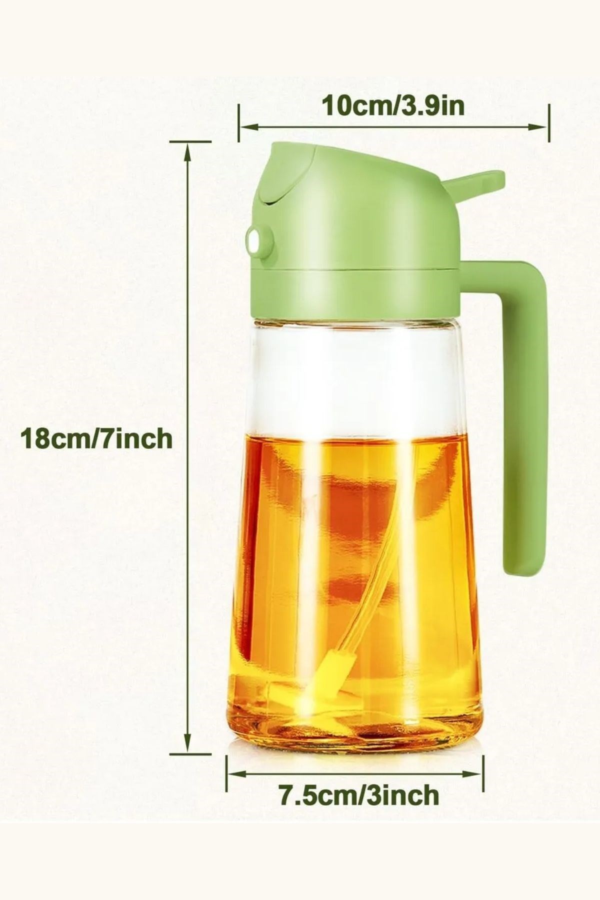3. Ergonomik ve Şık Tasarım: Yeşil ve bej tonlarında, modern bir görünüme sahip olan bu yağdanlık, mutfağınıza hem şıklık hem de işlevsellik katar. Ergonomik sapı sayesinde kolayca kavrayabilir, elinizden kaymadan güvenle kullanabilirsiniz.