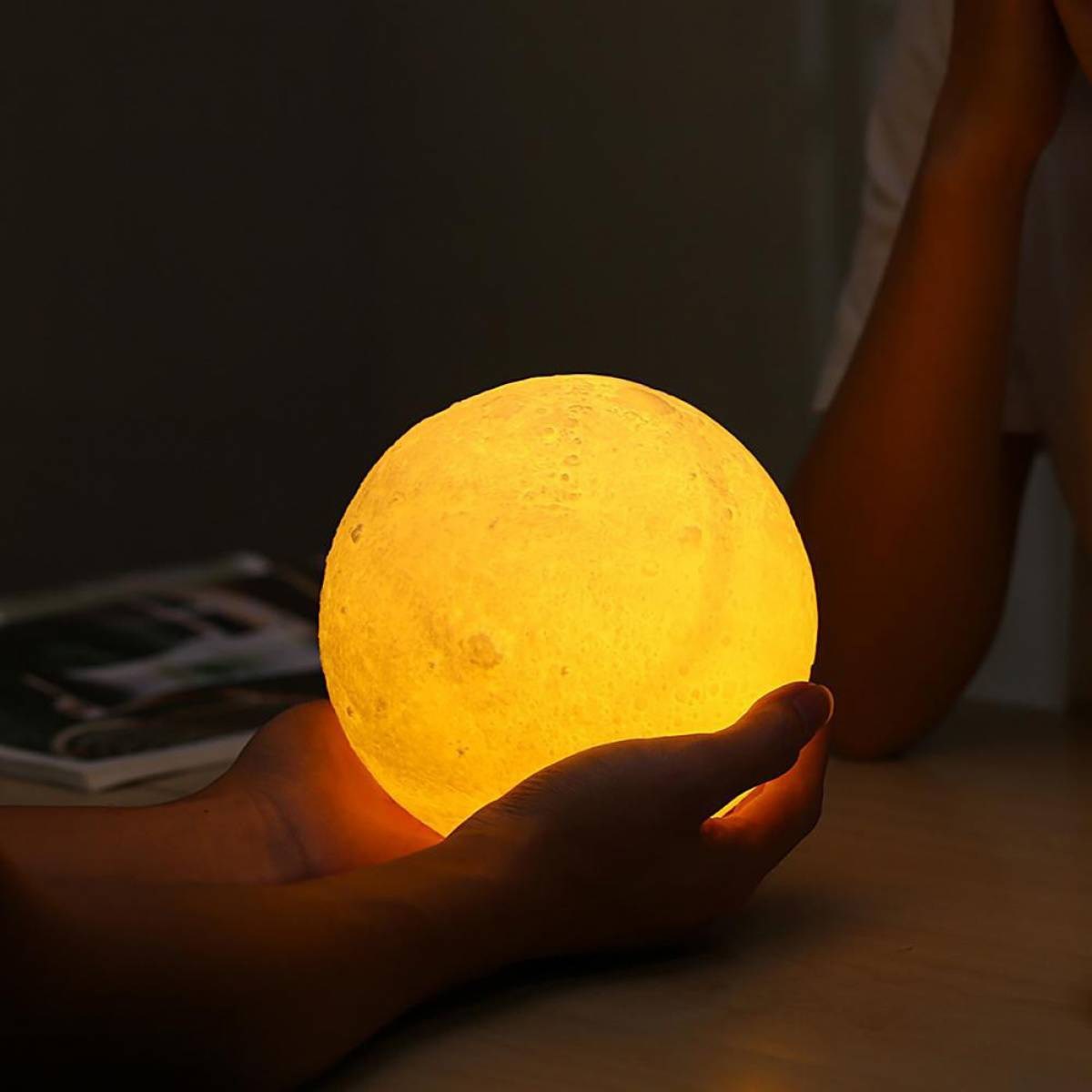 BUFFER® 3 Boyutlu Pilli Sarı Renk Dekoratif Ay Şeklinde Çocuk Lambası