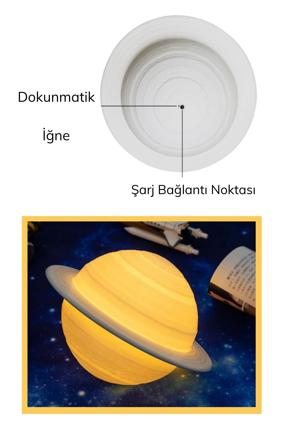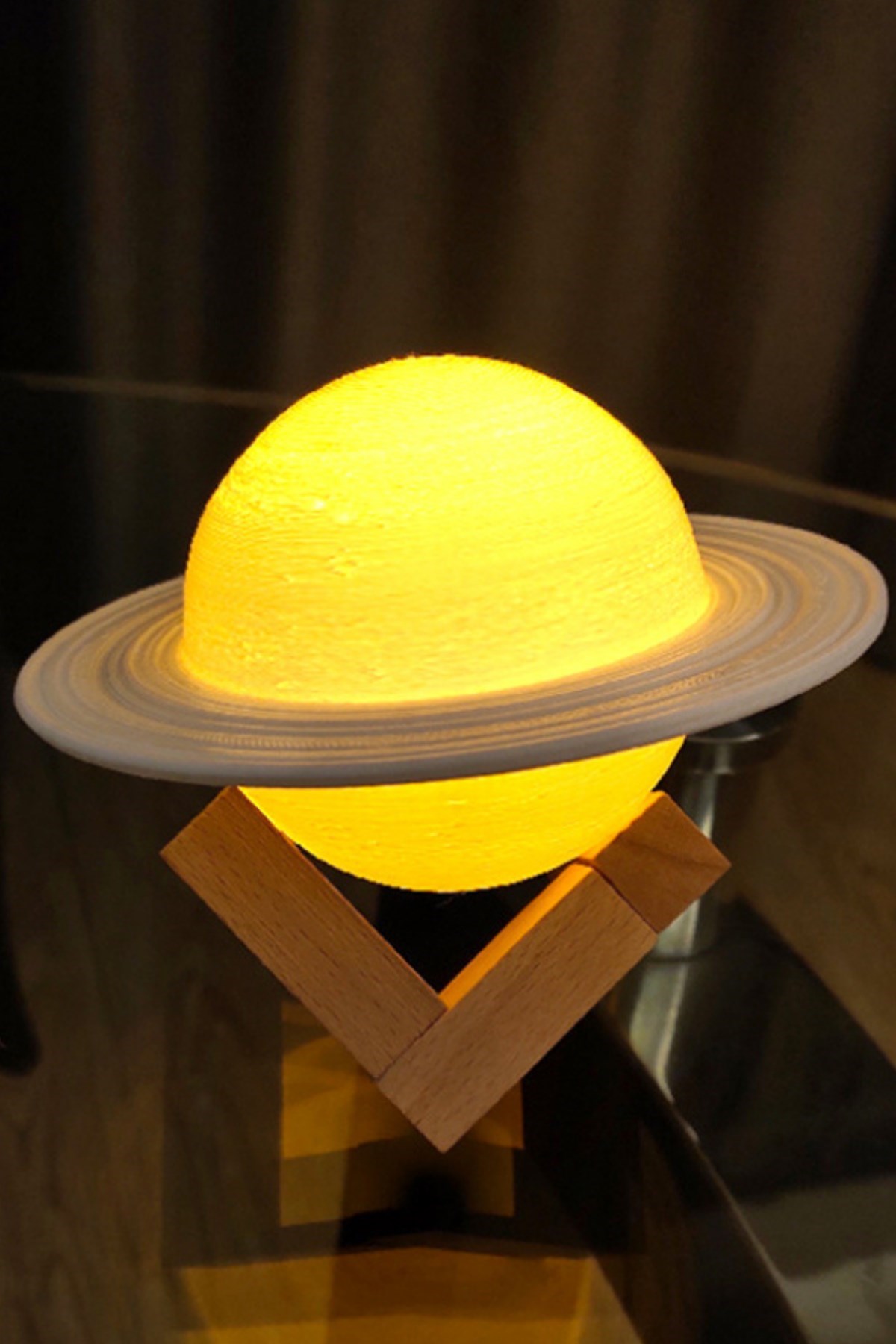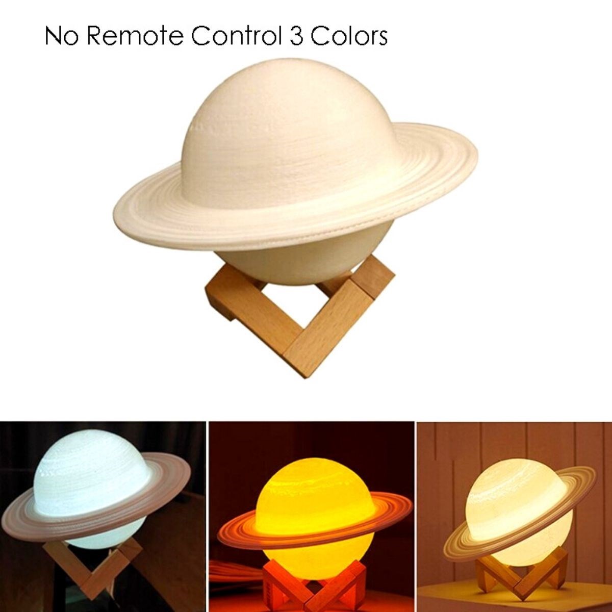Buffer 3D Print Satürn Dokunmatik Gezegen Ahşap Stantlı 3 Renk USB Şarjlı Gece Lambası (Kumandasız)