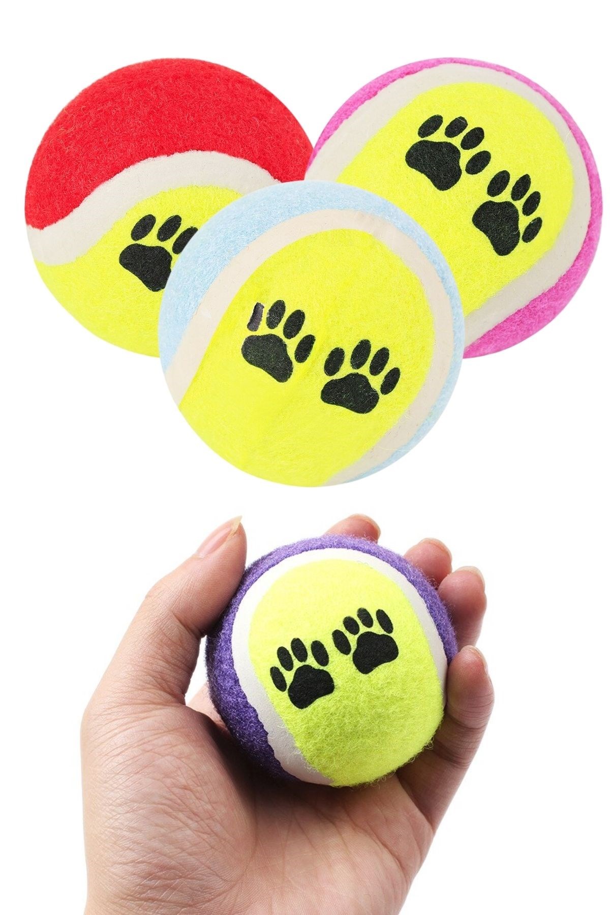 Evcil hayvanlarınız için desenli renki tenis topları onların eğlenerek oyanayacağı ideal bir oyun topudur