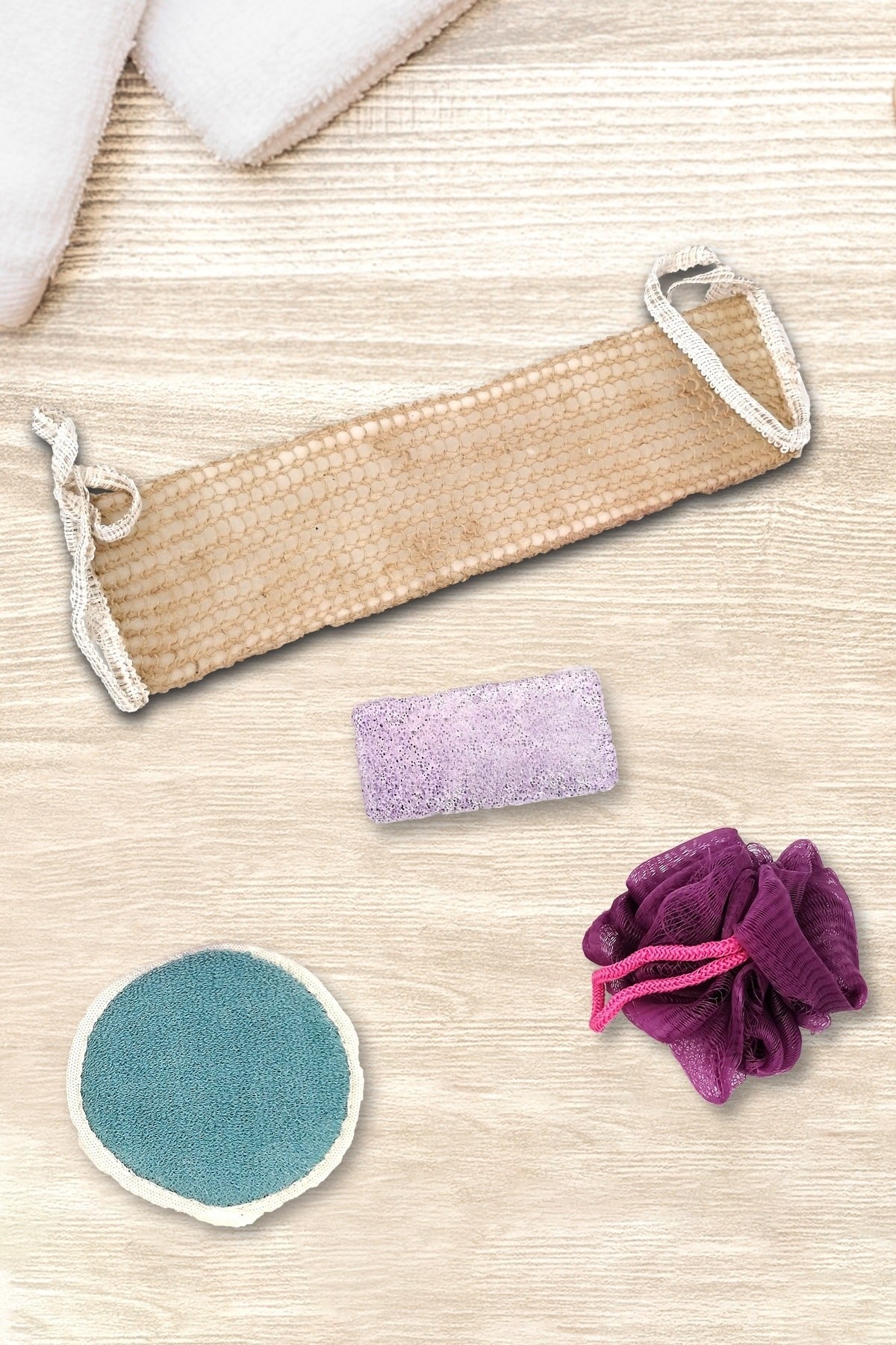 4 Parça Banyo Lif Aksesuar Seti Topuk Taşı Yüz Sırt Vücut Lifi Paket İçeriği: