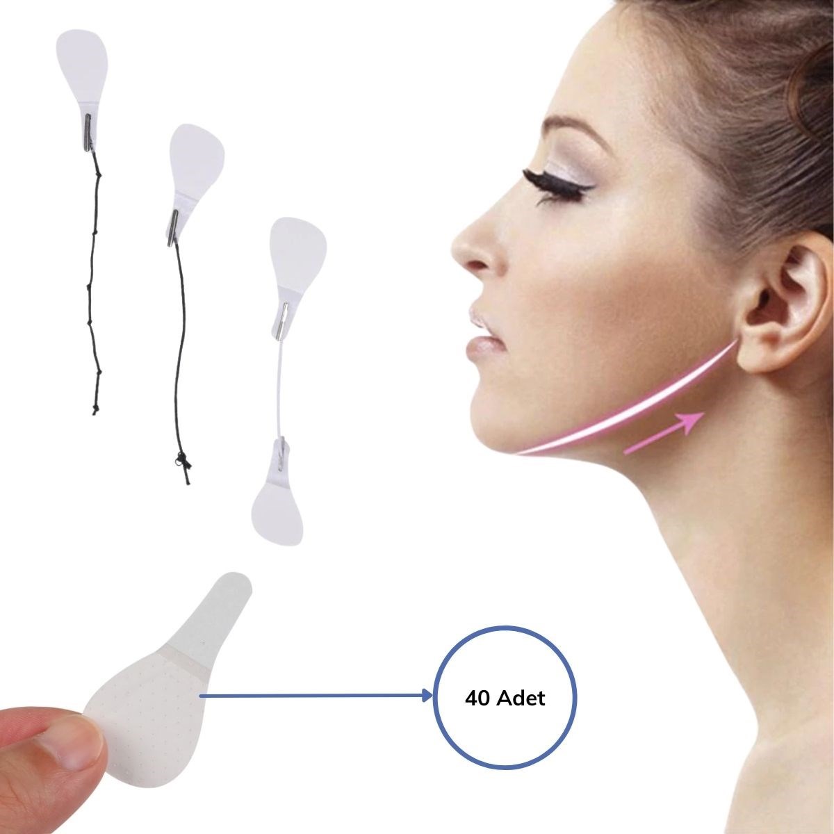 40 adet * Yüz Germe Bandı ve Kademeli Uygulama Lastikleri