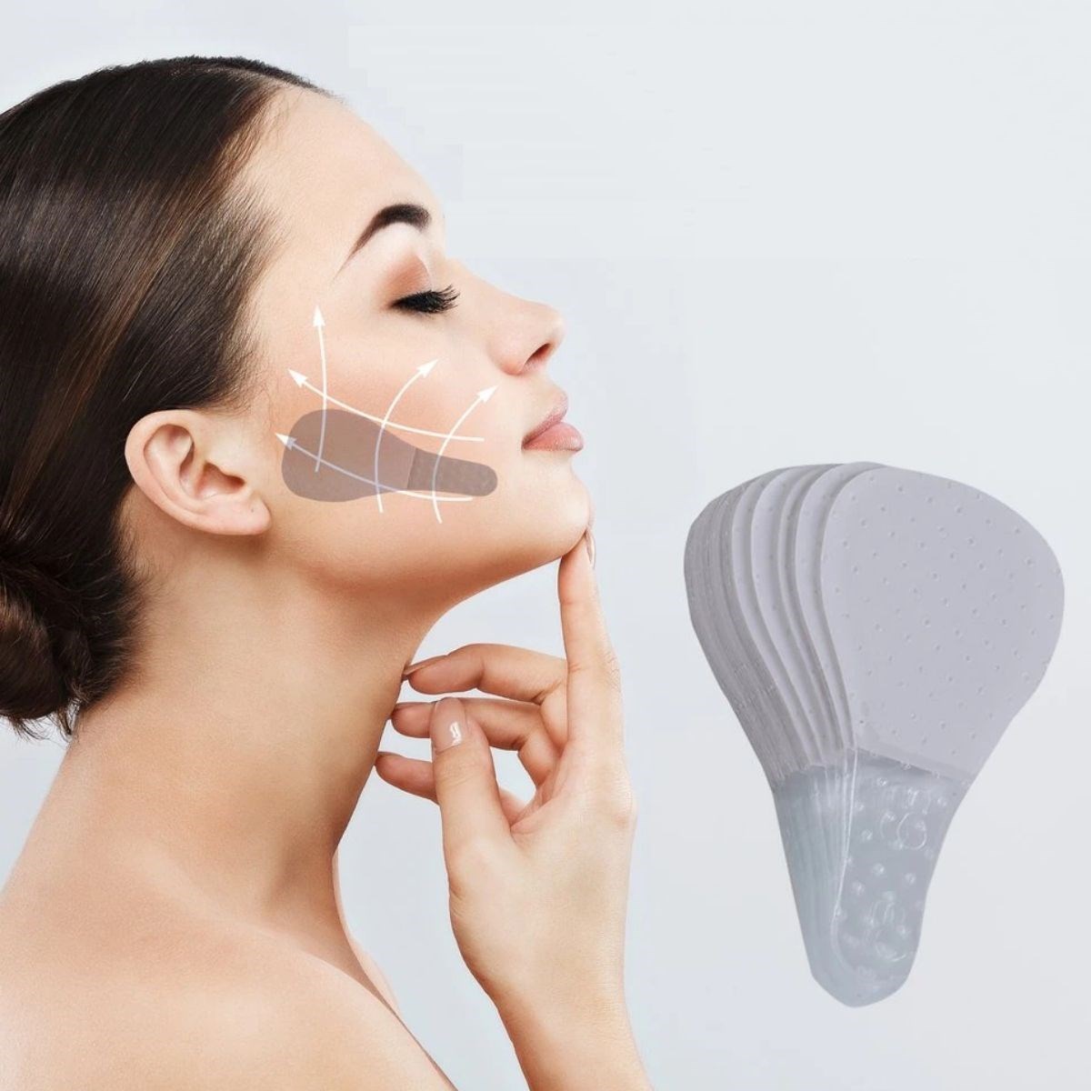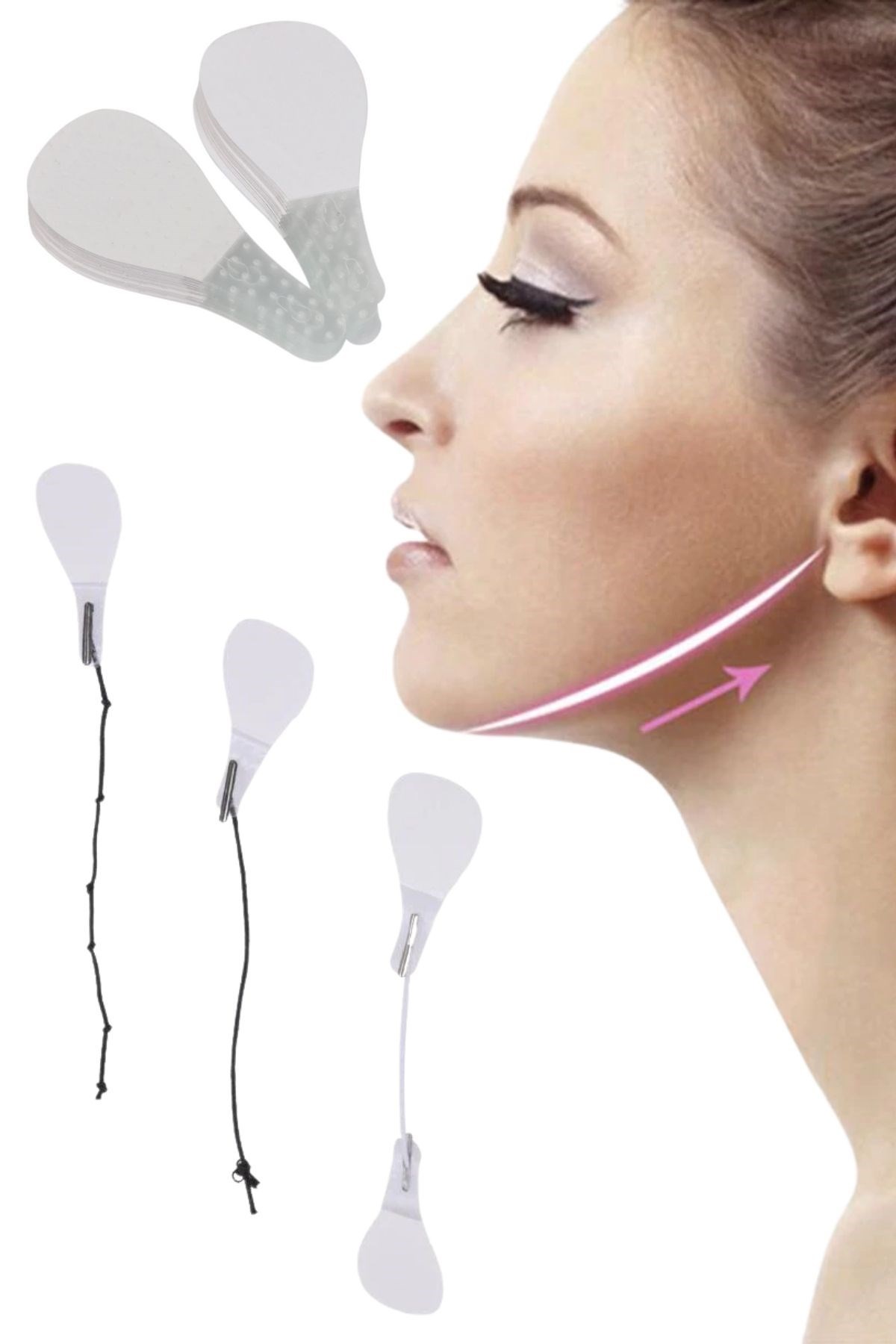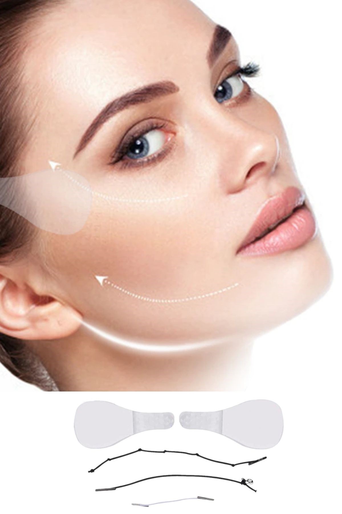 1 V Şekilli Bir Yüz için: Yüz germe pedleri, iyi esnekliğe sahip su geçirmezdir ve cildinizi rahatsız etmez V şeklinde bir yüz oluşturmak için cildinizi kaldırabilir ve sıkılaştırabilir