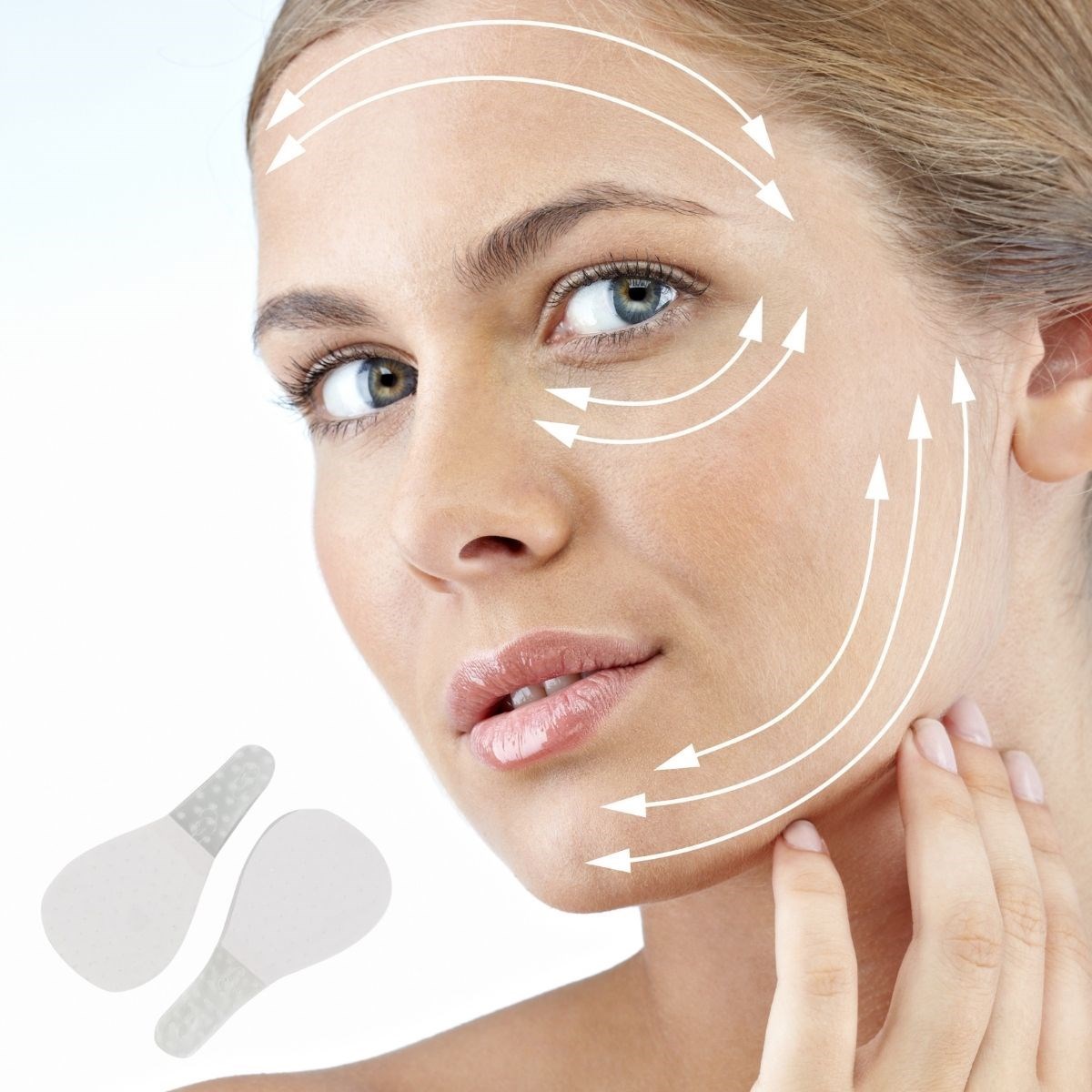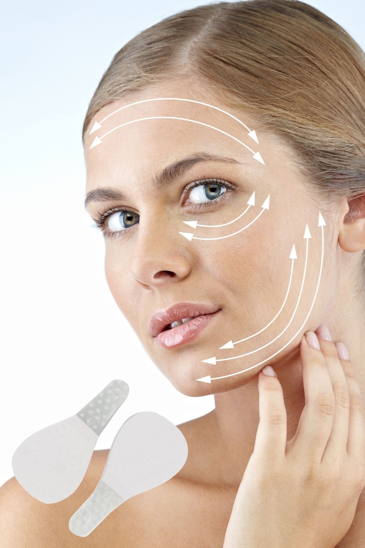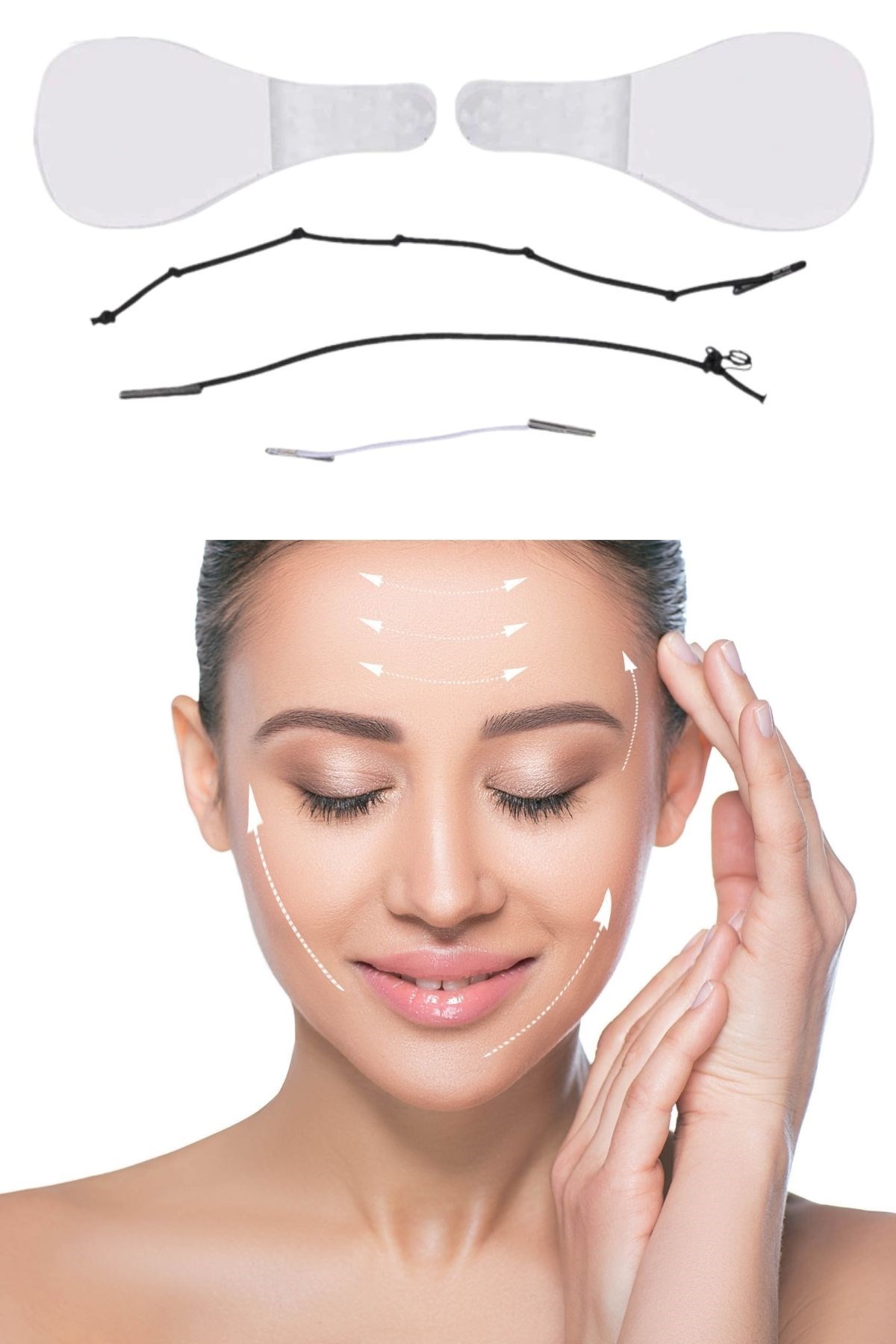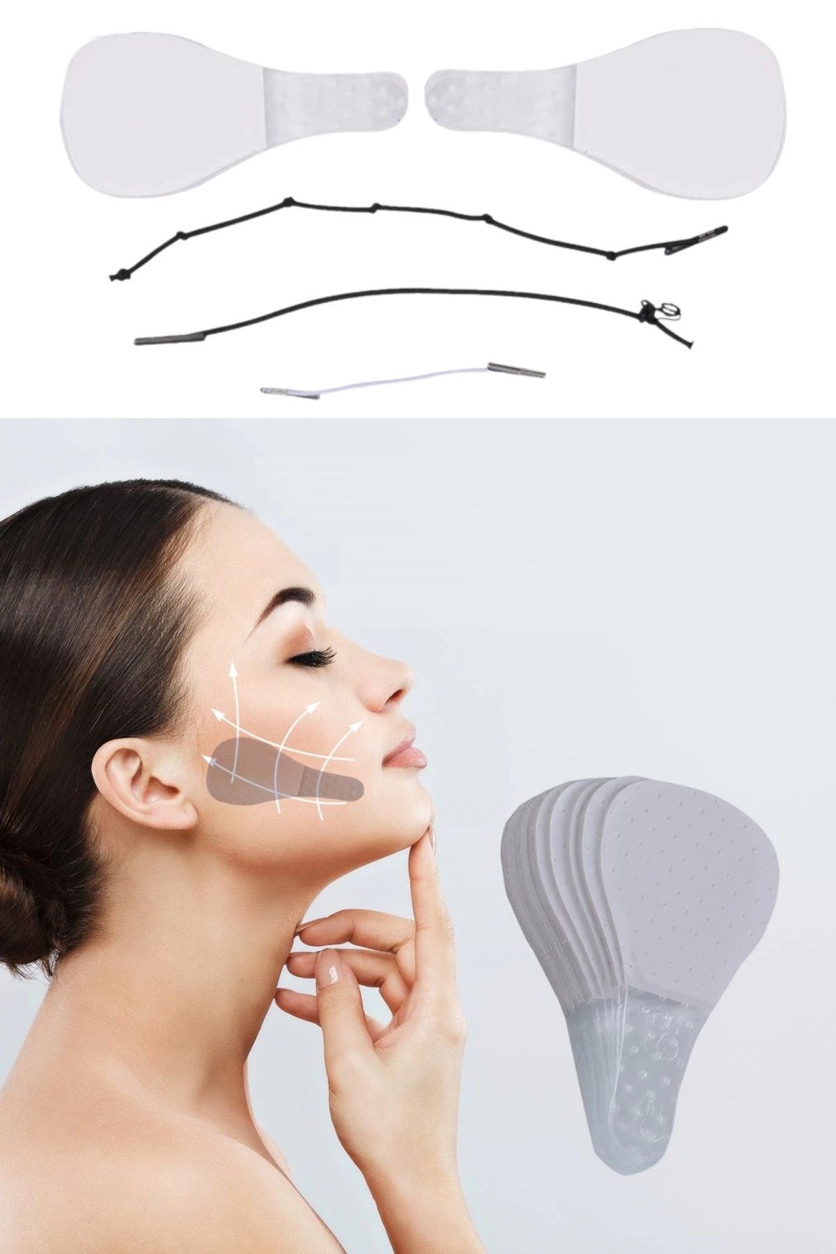 1 V Şekilli Bir Yüz için: Yüz germe pedleri, iyi esnekliğe sahip su geçirmezdir ve cildinizi rahatsız etmez V şeklinde bir yüz oluşturmak için cildinizi kaldırabilir ve sıkılaştırabilir
