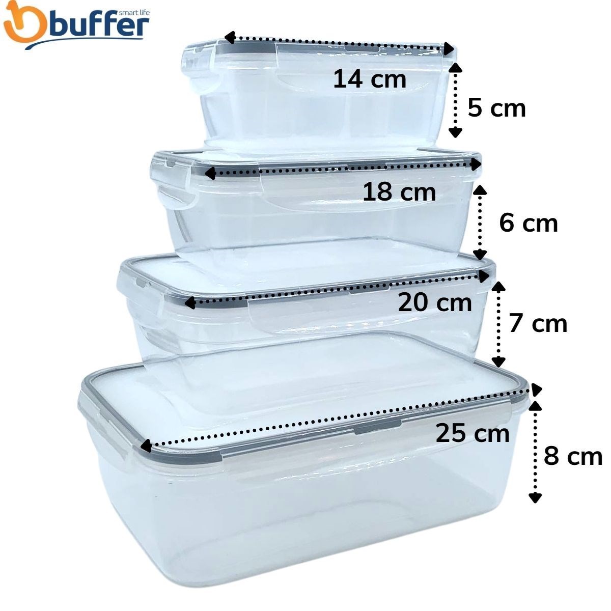 BUFFER® 4'lü İç İçe Kilitli Kapaklı Plastik Erzak Saklama Kapları