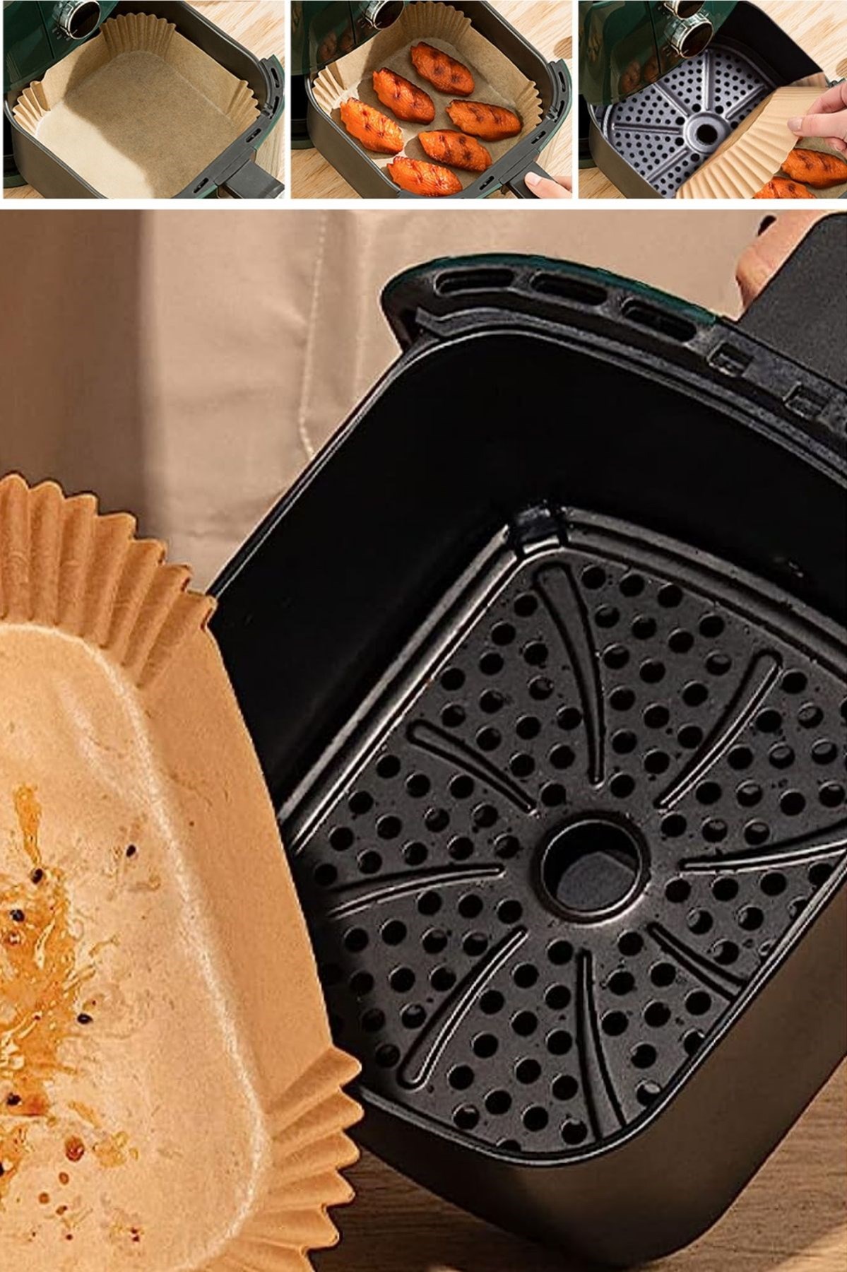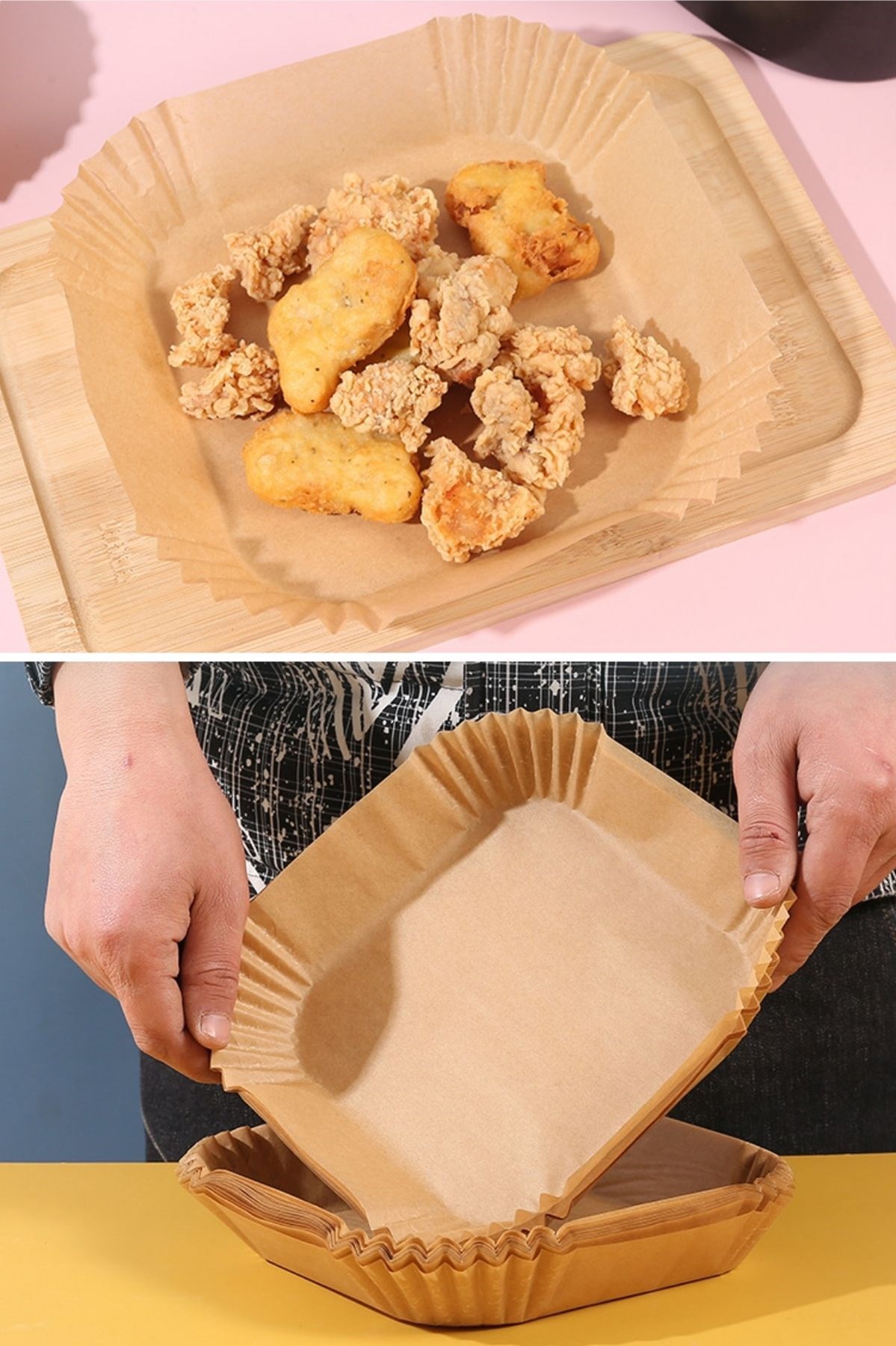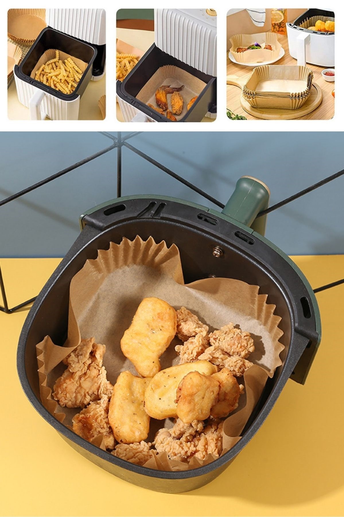 BUFFER® 50 Adet Air Fryer Pişirme Kağıdı Tek Kullanımlık Hava Fritöz Yağ Geçirmez Yapışmaz Kare Tabak Model PVC