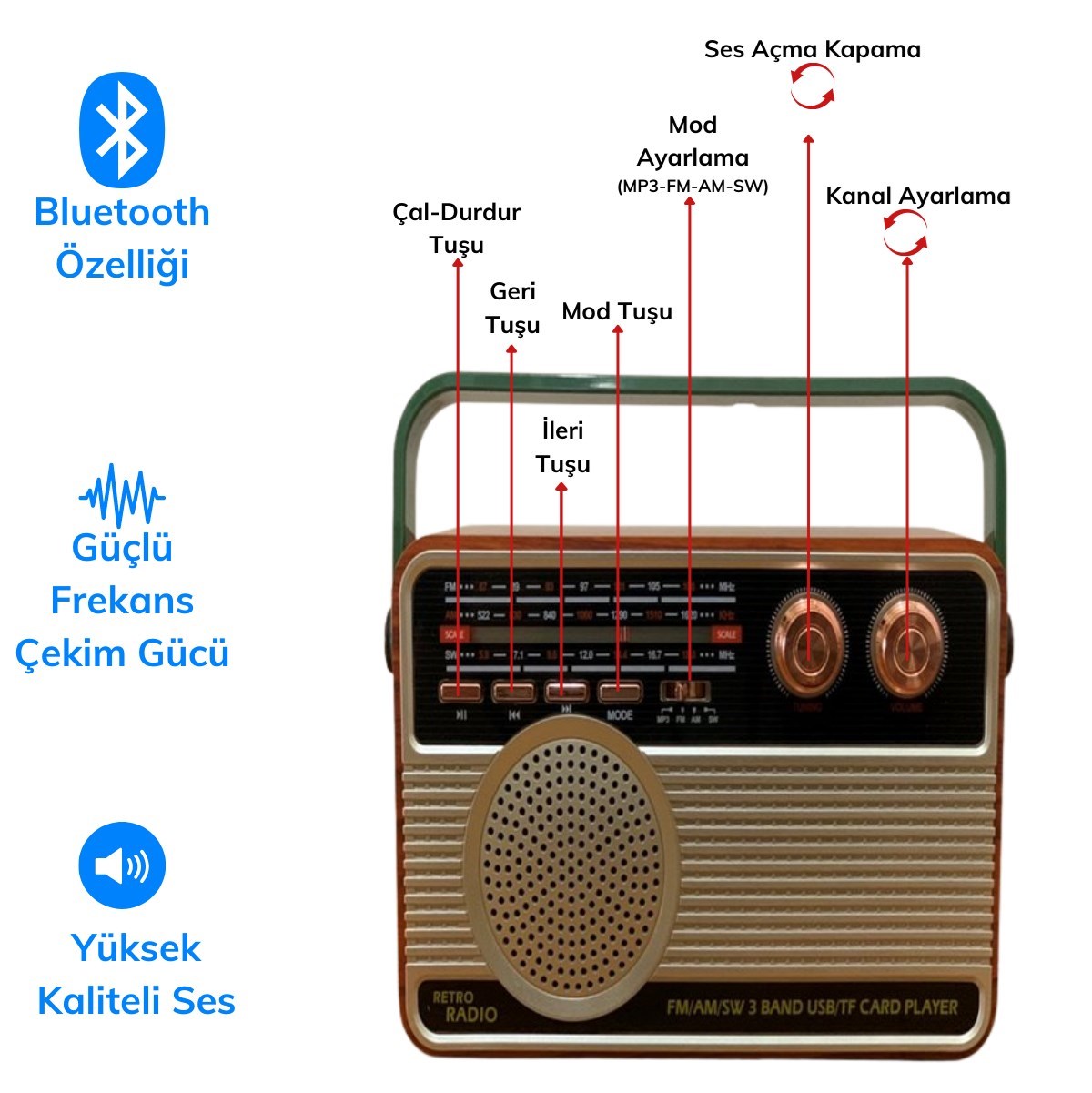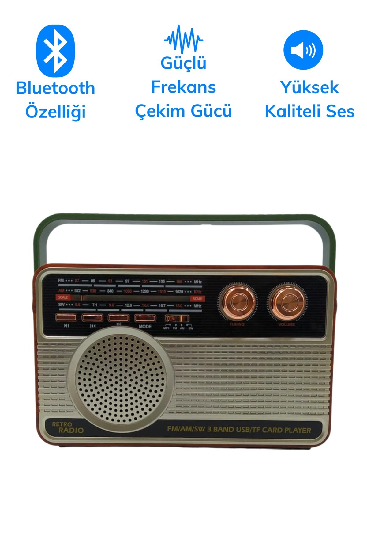 Yüksek hassasiyetli anteni sayesinde oldukça güçlü çekim sağlar ve istediğiniz frekanslarda FM / AM / SW tüm radyo kanallarını dinleyebilirsiniz