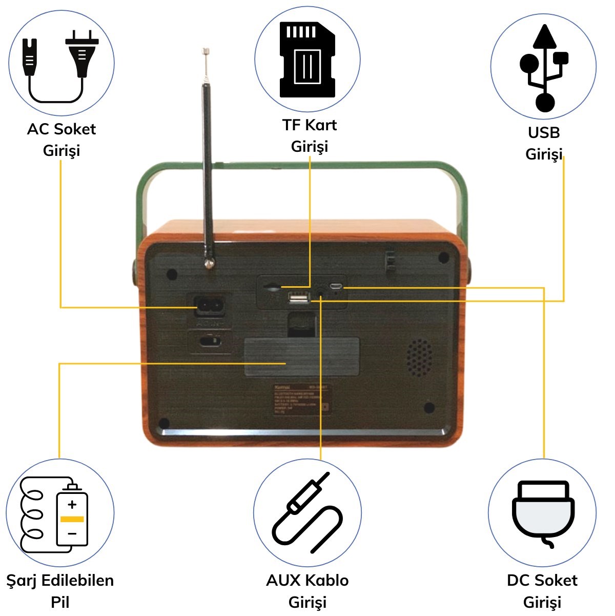 Buffer 506B Dekoratif Eskitme Nostalji Uzaktan Kumandalı Radyo Usb/Aux/Hafıza Kartı/Bluetooth/Şarjlı