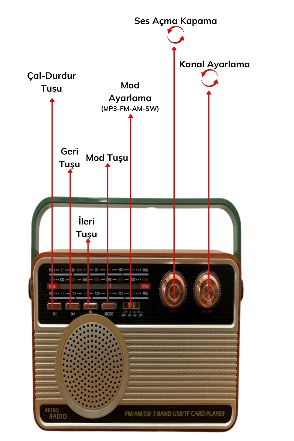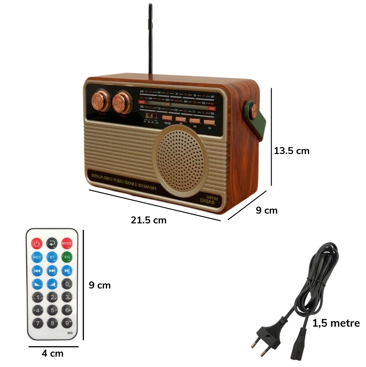 Buffer 506B Dekoratif Eskitme Nostalji Uzaktan Kumandalı Radyo Usb/Aux/Hafıza Kartı/Bluetooth/Şarjlı
