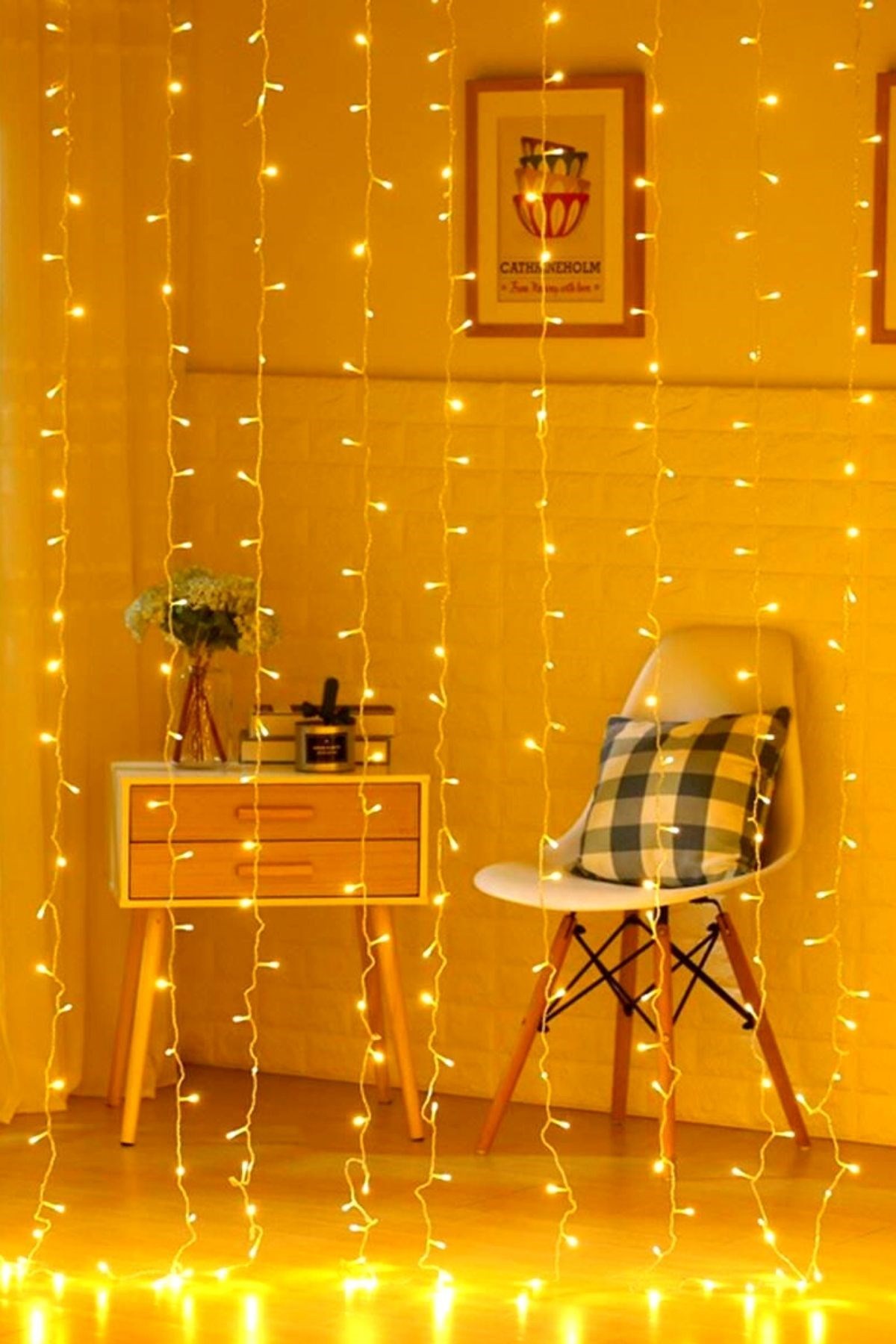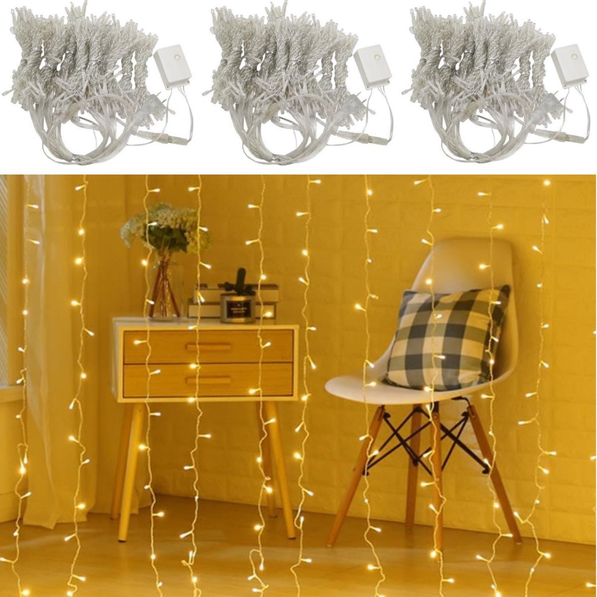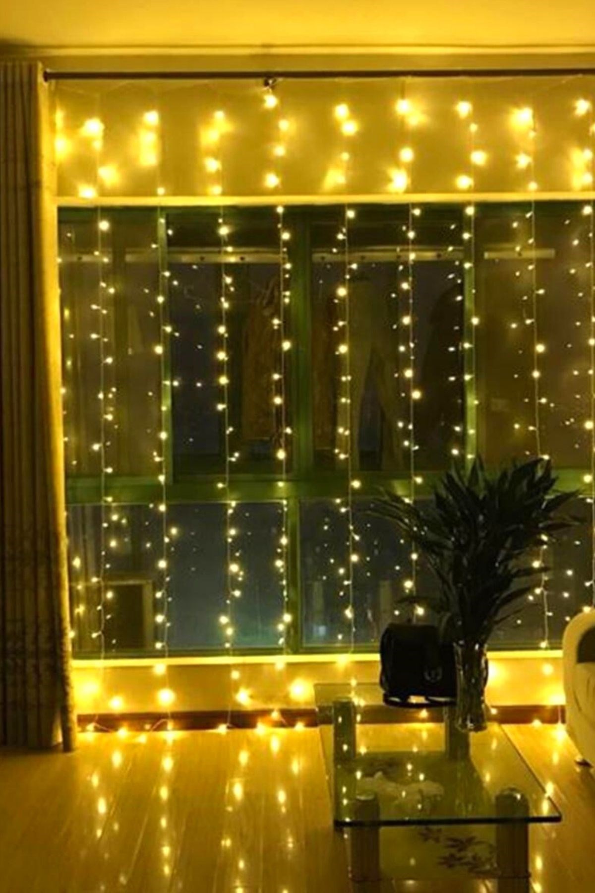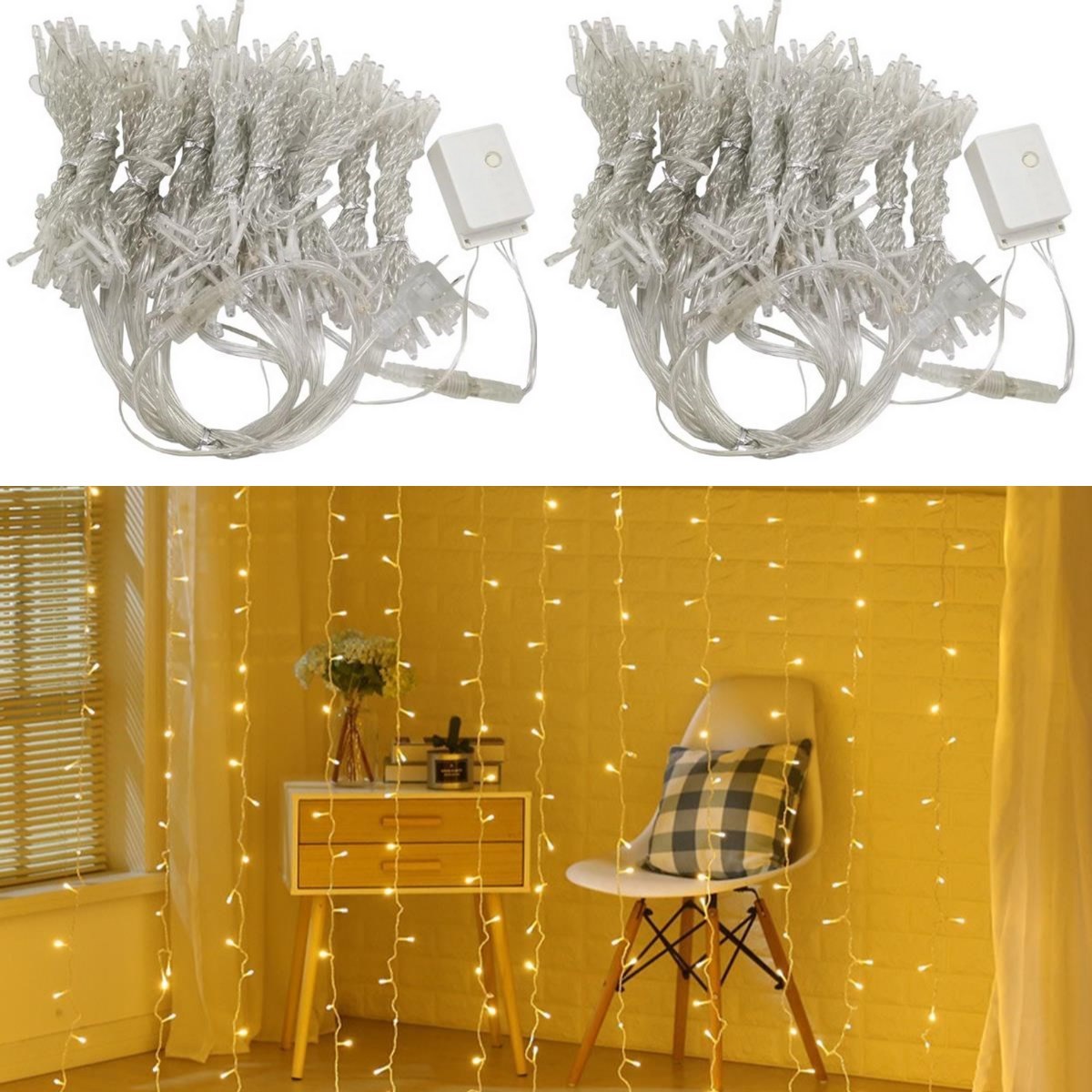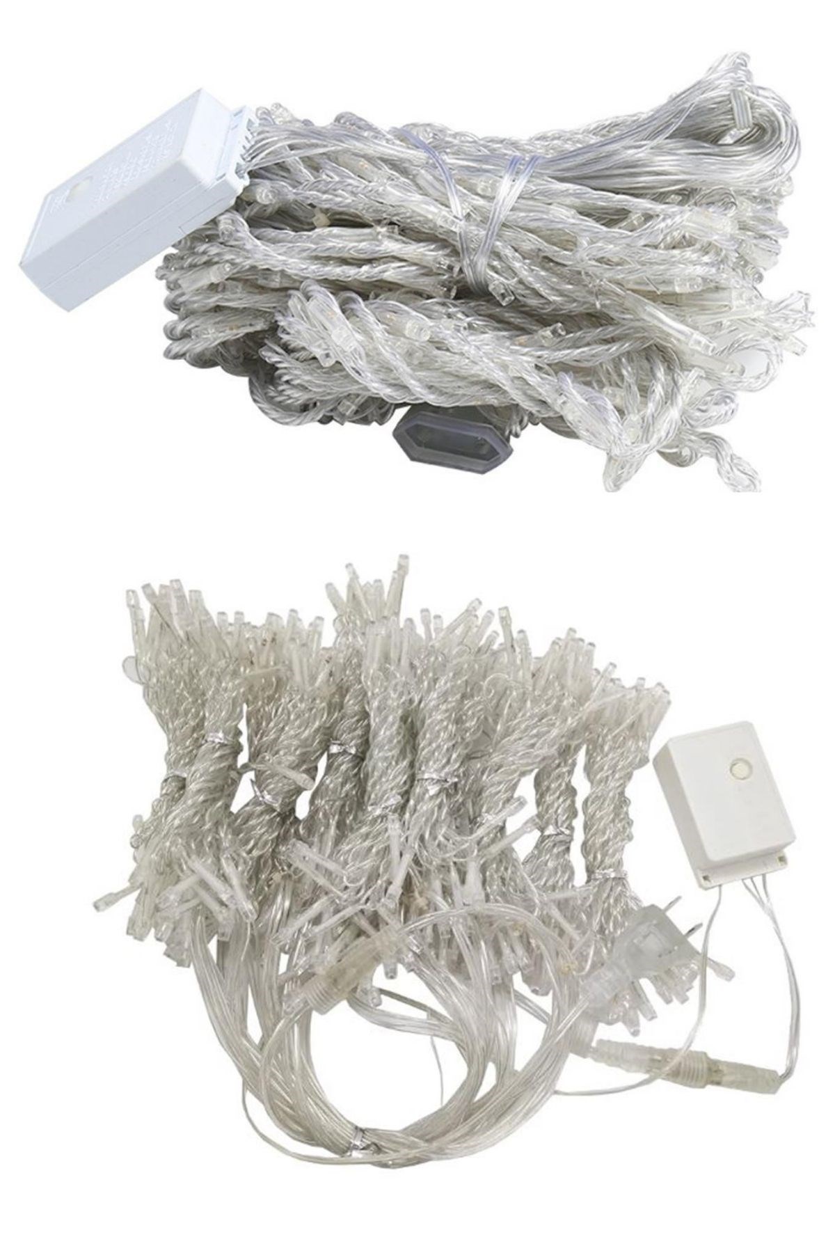 BUFFER® 8 Fonksiyonlu 200 Led 10 Saçak Şerit Led 2x2 Perde İp Led (Gün Işığı)