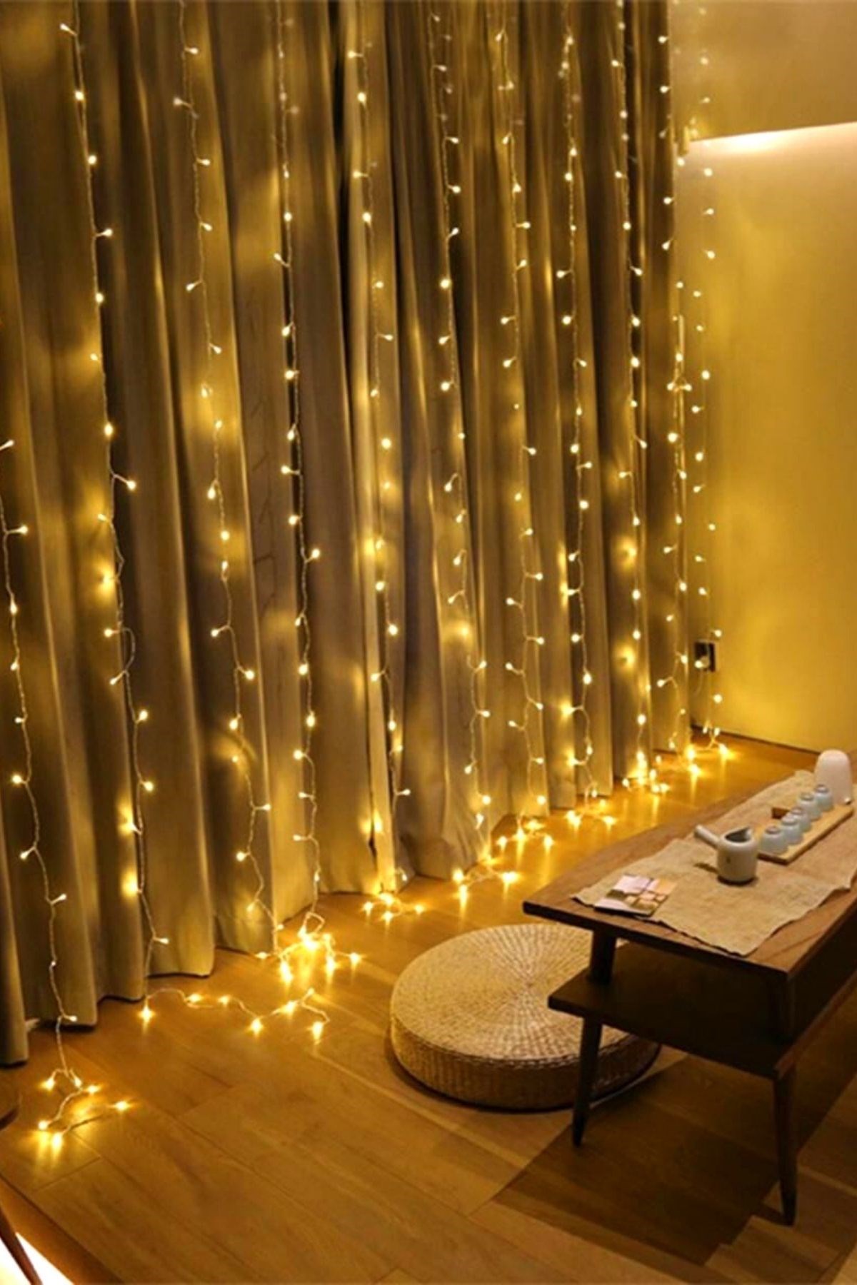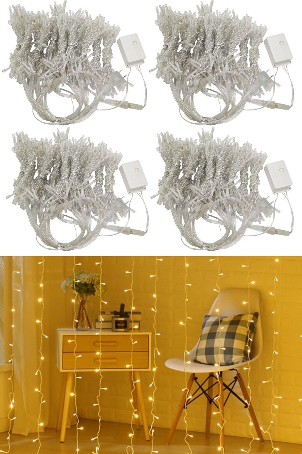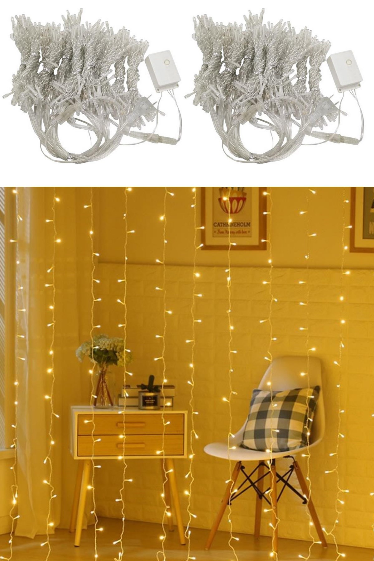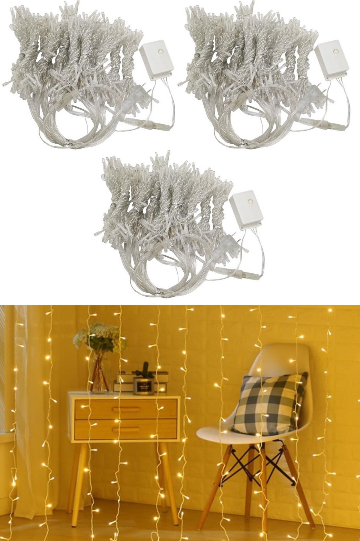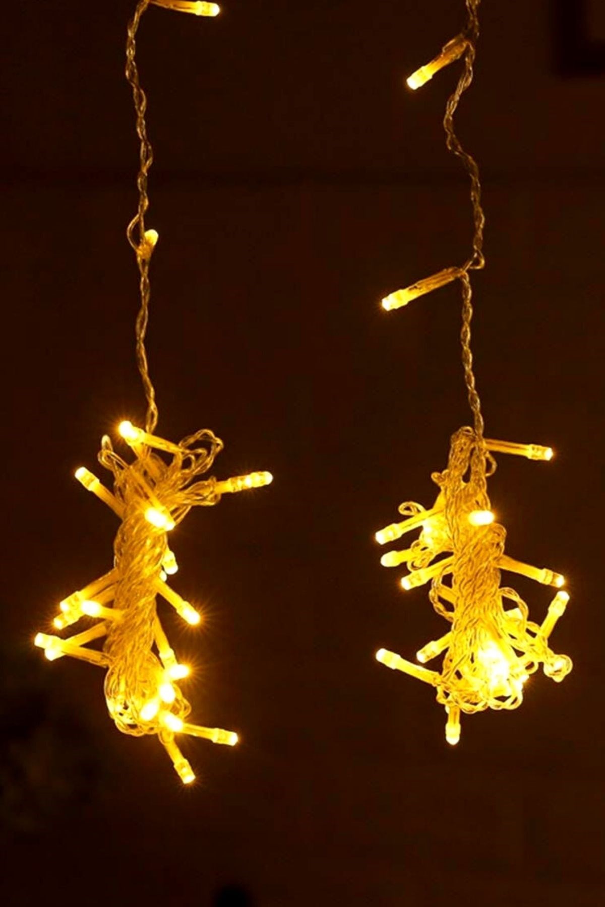 BUFFER® 8 Fonksiyonlu 200 Led 10 Saçak Şerit Led 2x2 Perde İp Led (Gün Işığı)