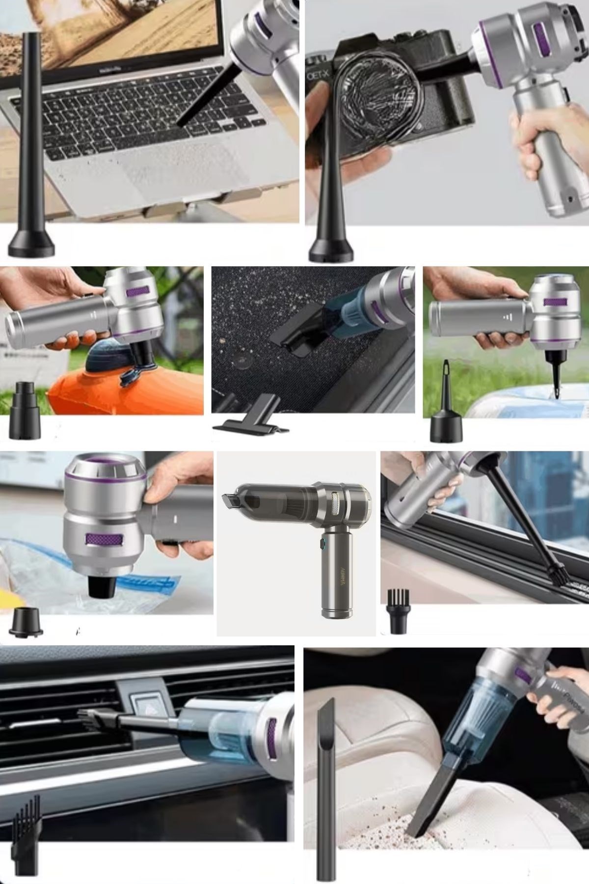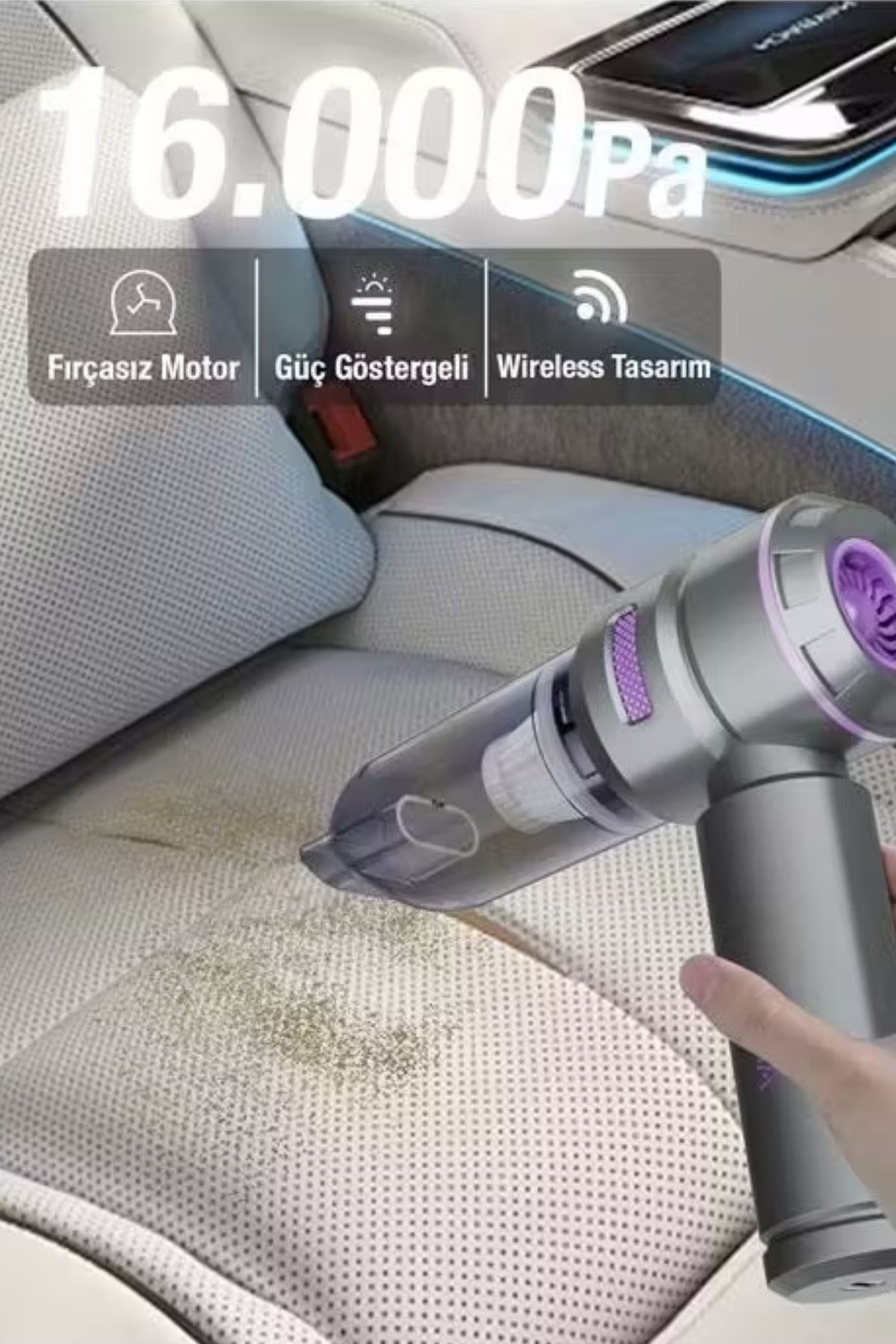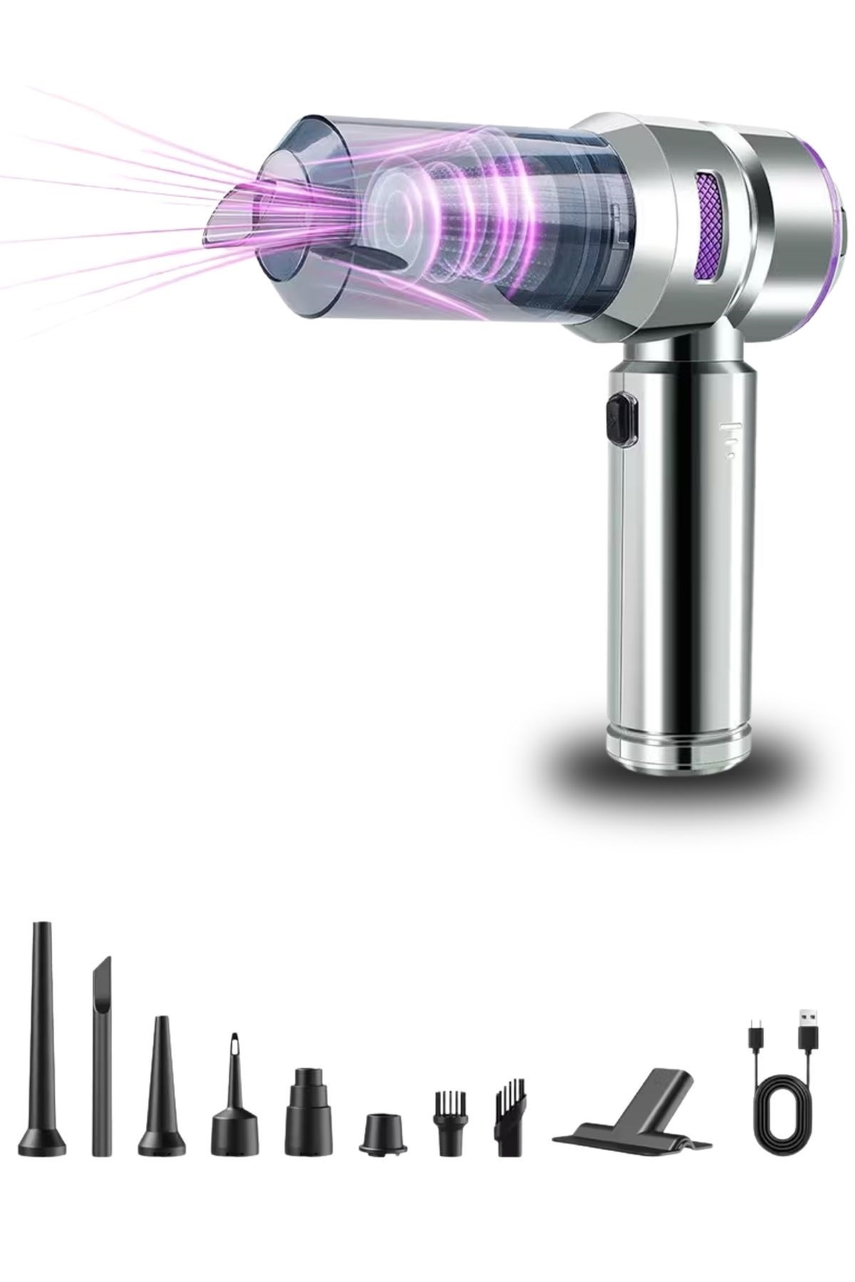 BUFFER® 9 Farklı Uçlu Kablosuz Şarjlı Araç İçi Süpürge – Wireless Destekli, Güçlü Emiş, Taşınabilir Pratik Araç Temizleyici