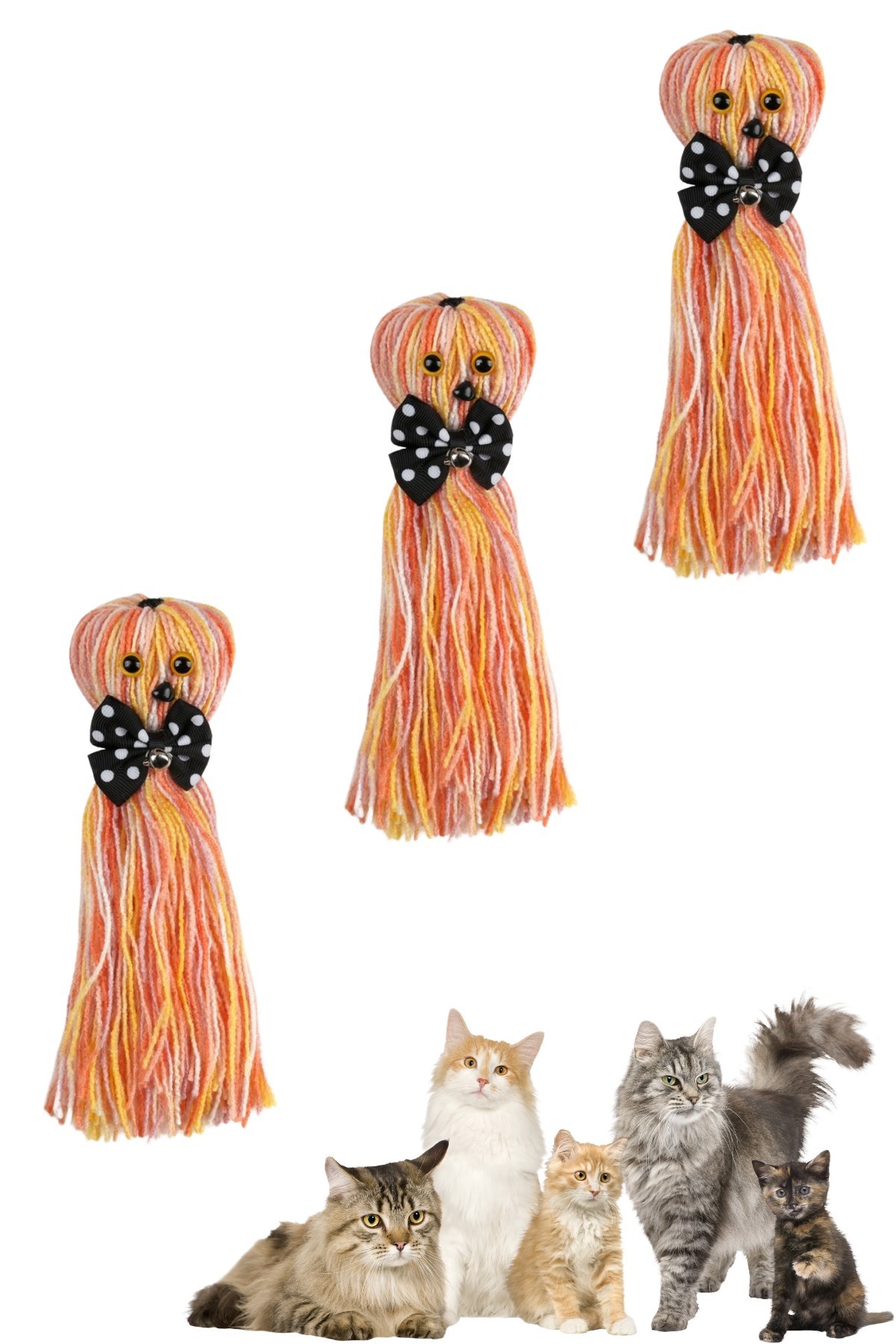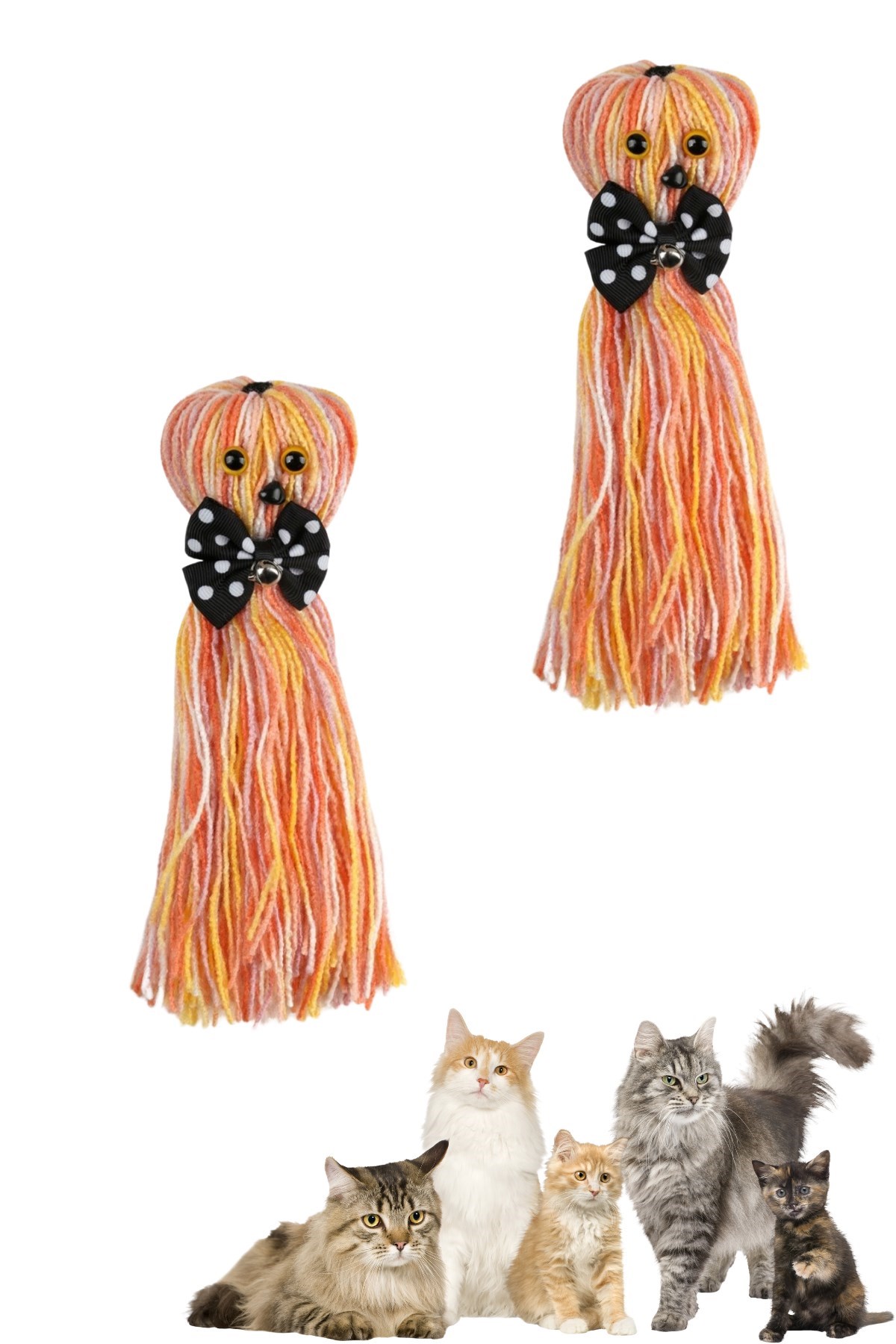 BUFFER® Ahtapot Şekilli Zilli Ve İpli Rengarenk Püsküllü Sevimli KediOyuncağı