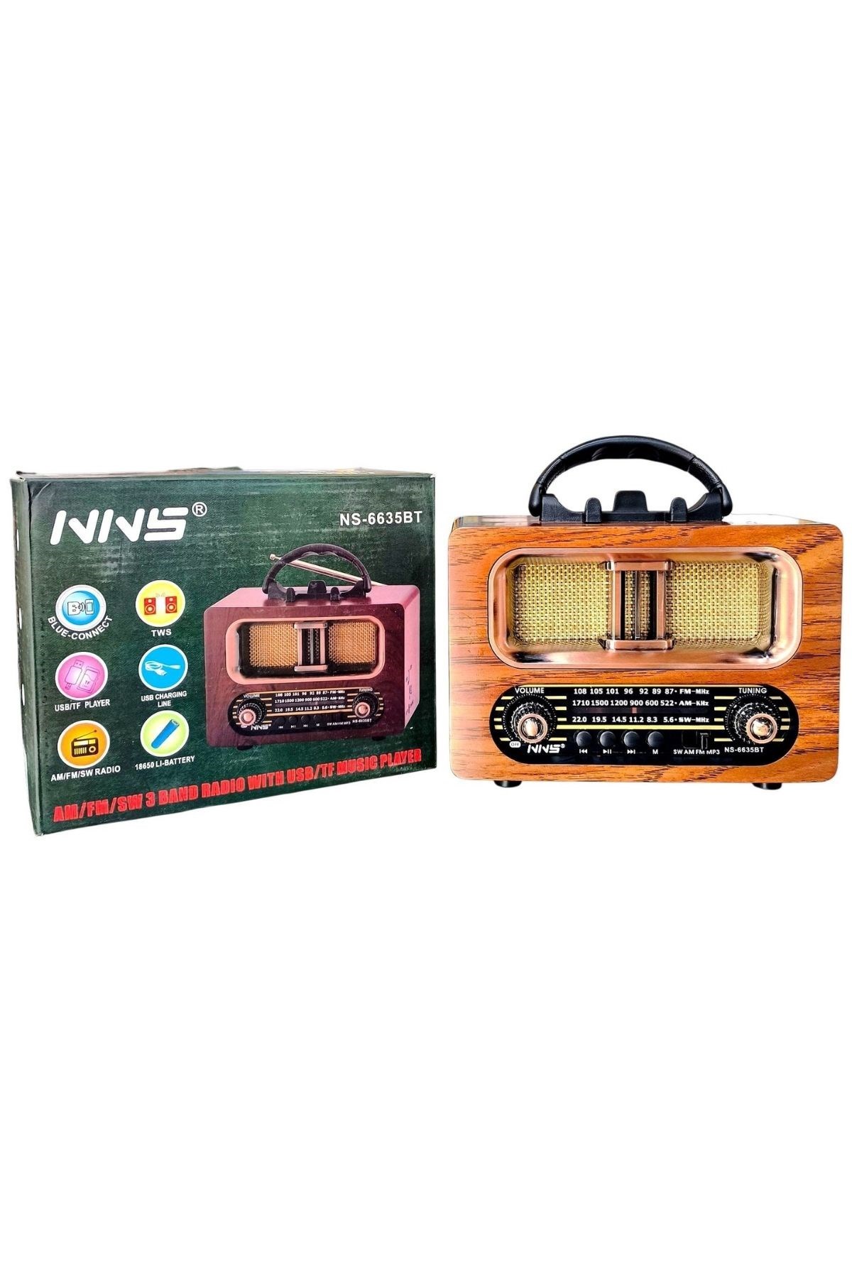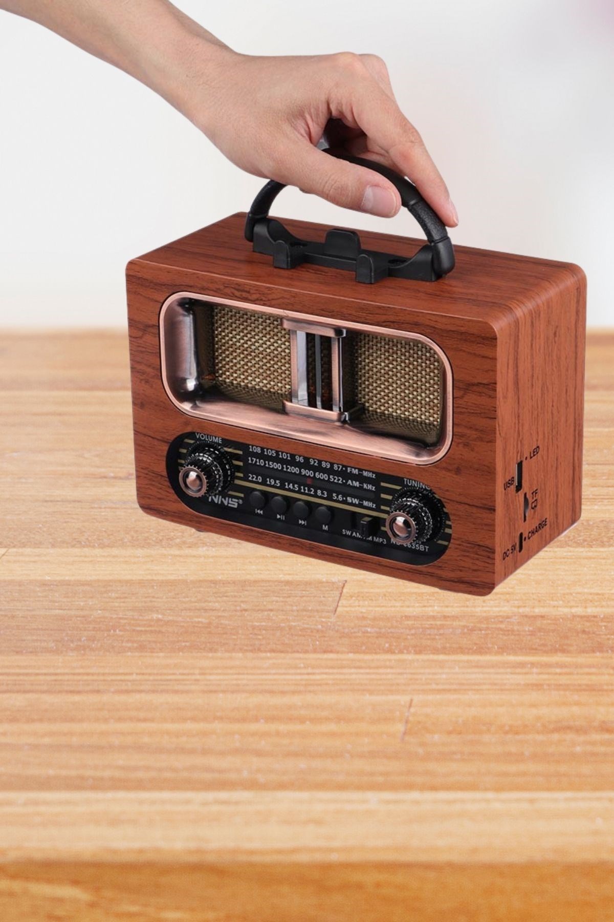 BUFFER® Büyük Boy Retro Ahşap Tasarım Bluetooth Hoparlörlü Radyo – FM/AM Destekli, Şarjlı ve Taşınabilir