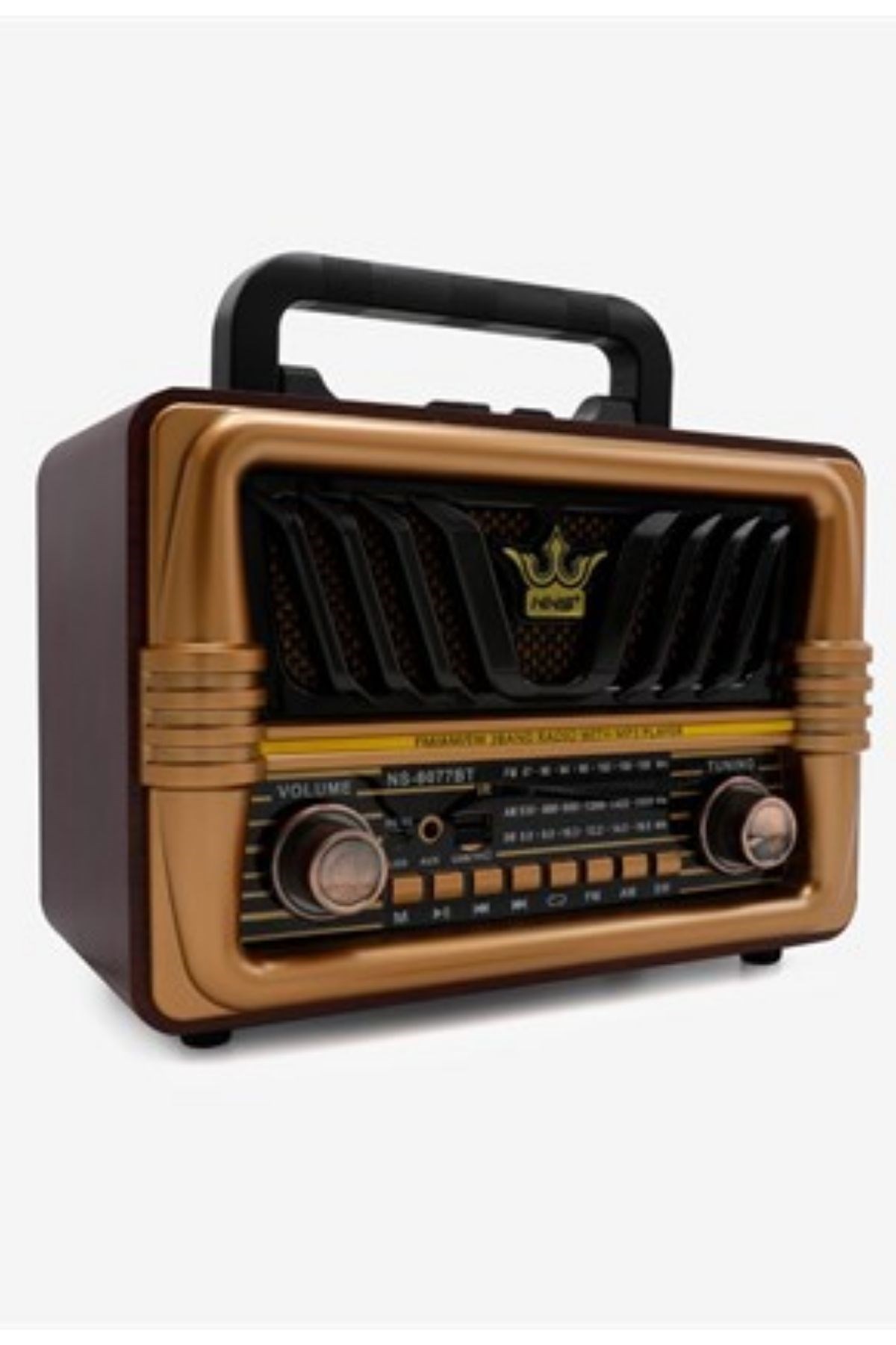 Geçmişin büyüleyici retro tarzını günümüzün gelişmiş teknolojisiyle buluşturan BUFFER® NS-8077, hem şık tasarımı hem de güçlü özellikleriyle müzik keyfini her ortamda yanınıza taşır. Büyük boy yapısı, pratik telefon tutma sapı ve güçlü hoparlör performansı sayesinde hem dekoratif hem de fonksiyonel bir kullanım sunar.