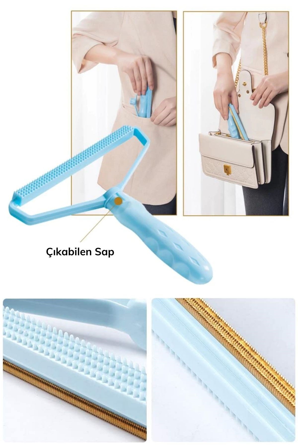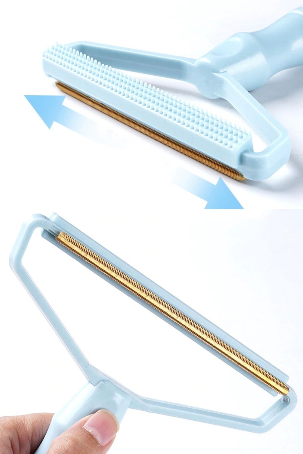 Çift taraflı başlığıyla kazak ve elbiselerinizde zamanla oluşan tiftik ve tüyleri toplamanızı kolaylaştırır