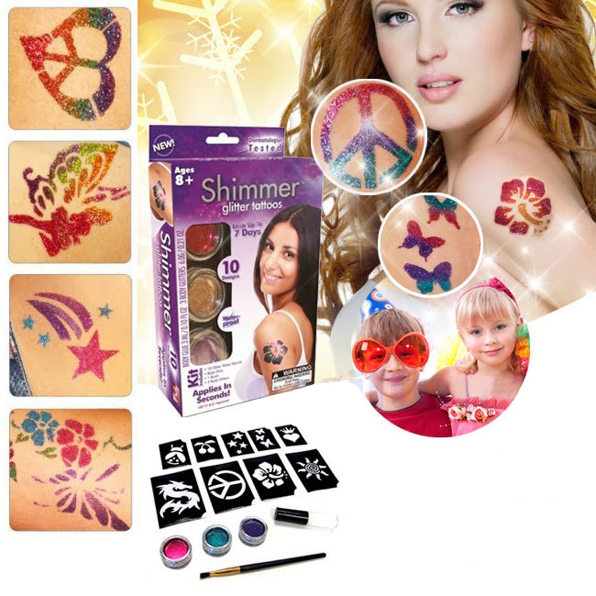 BUFFER® Çocuklar İçin Su Geçirmez Yaldızlı Işıltılı Geçici Dövme Seti
