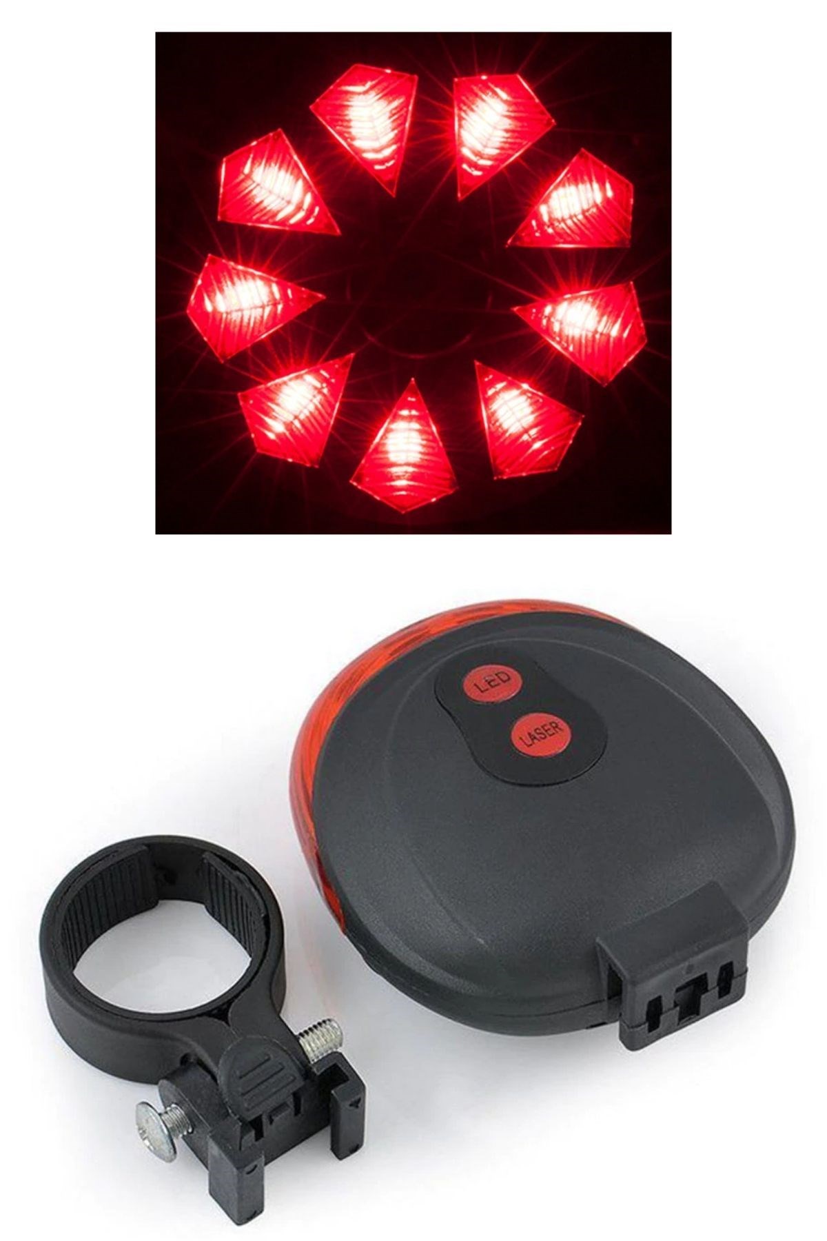 Çok Fonksiyonlu Pilli Bisiklet Led Lazer Işığı Arka Stop Lambası