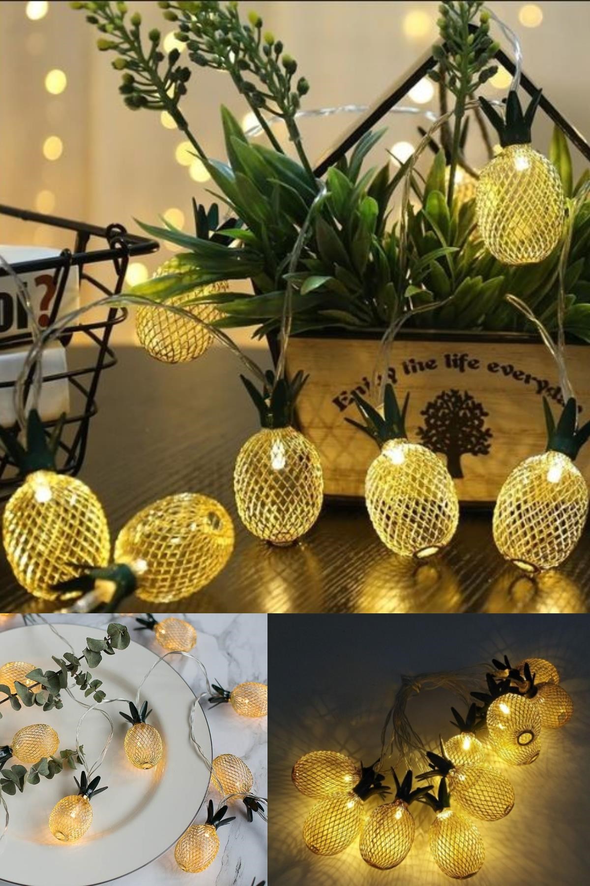 Ananas şeklinde lambalar ile ister yılbaşı aydınlatma süsleme için isterseniz ortamı renklendirmek için harika bir dekor oluşturabilirsiniz