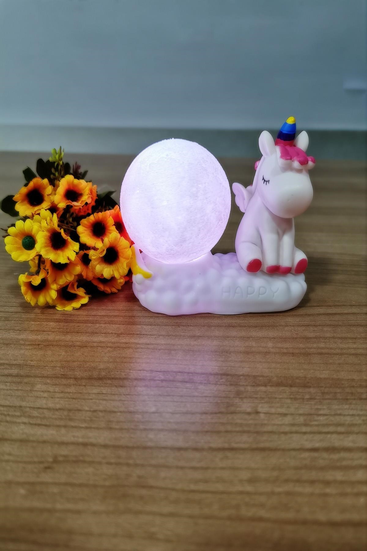 Dekoratif Renk Değiştiren Unicornlu Beyaz Çocuk Gece Lambası