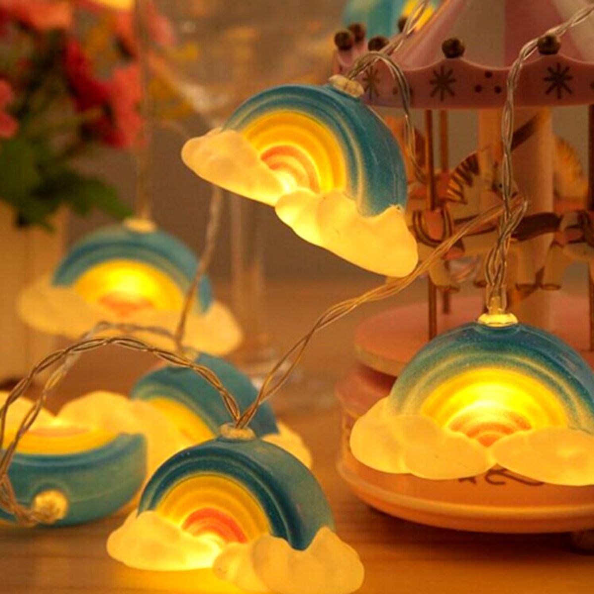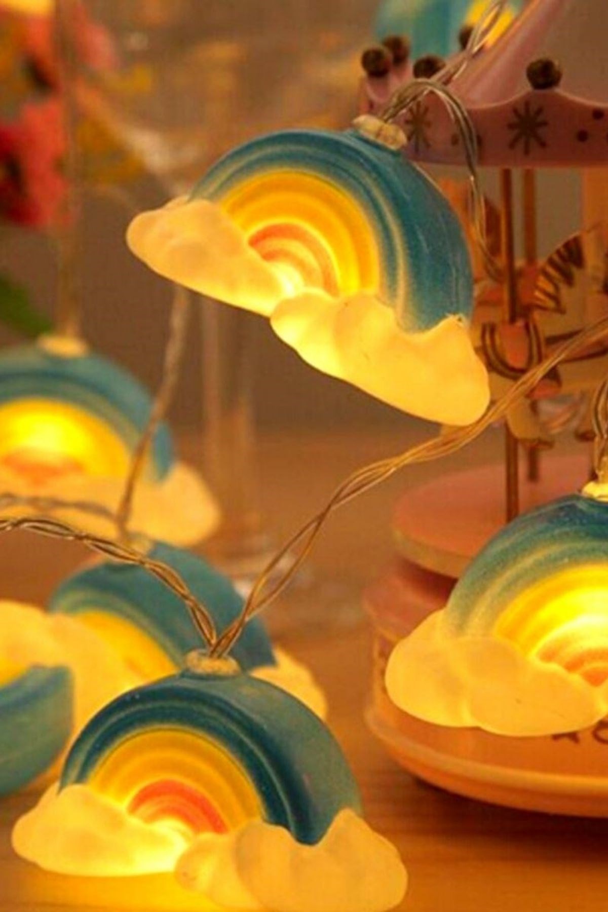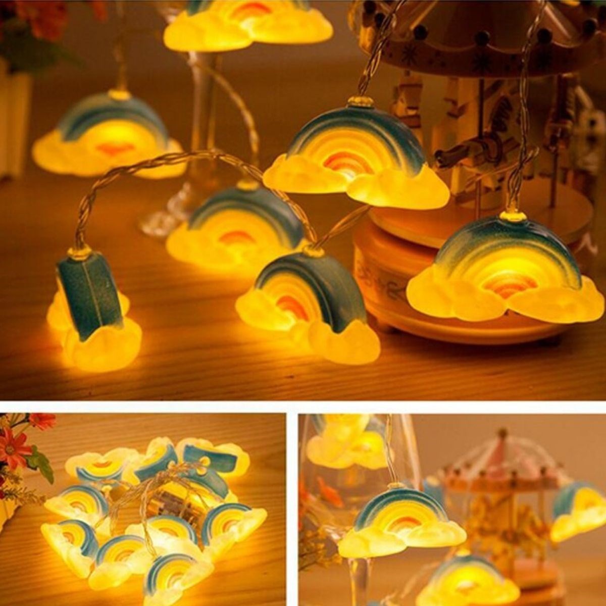 Dekoratif Şirin Gökkuşağı Pilli İp Şerit Led Işık Gece Lambası