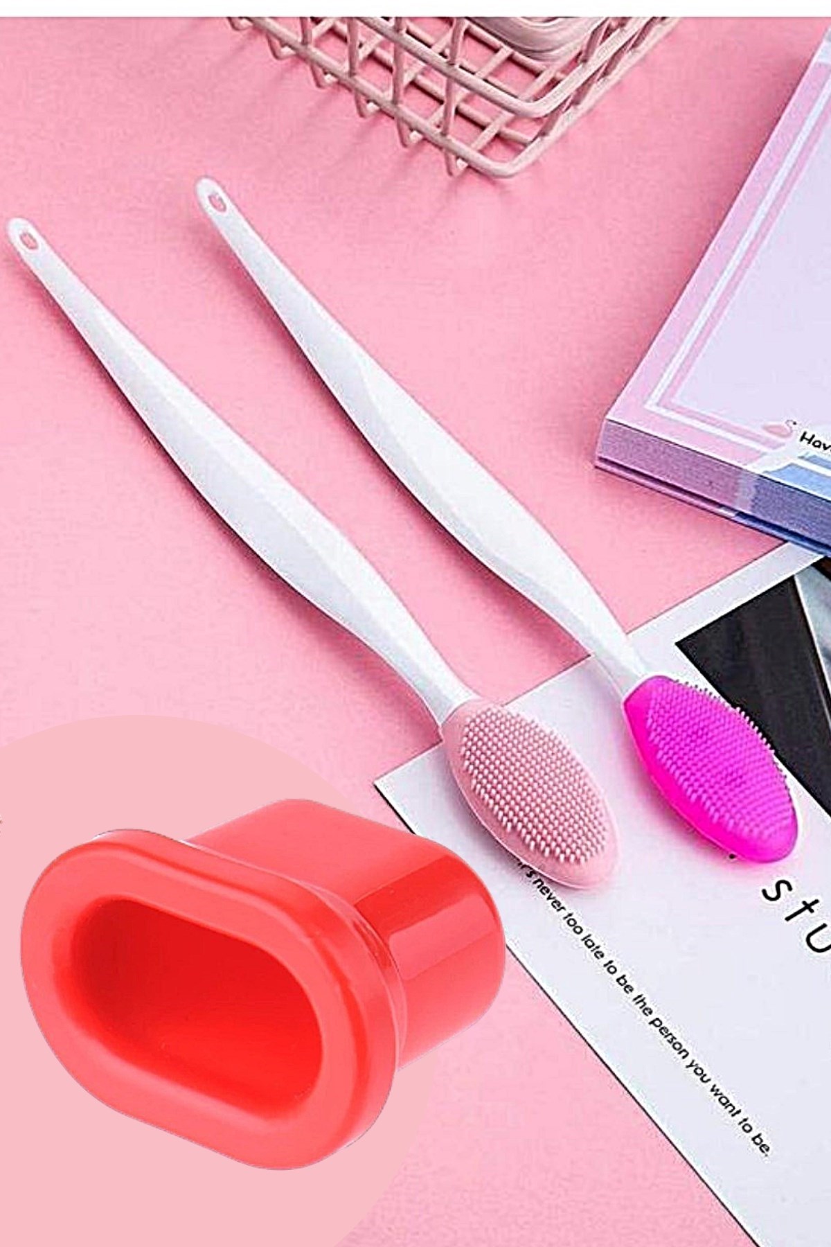 2 adet dudak peeling fırçası gözenek temizleyici fırça 14,5 cm