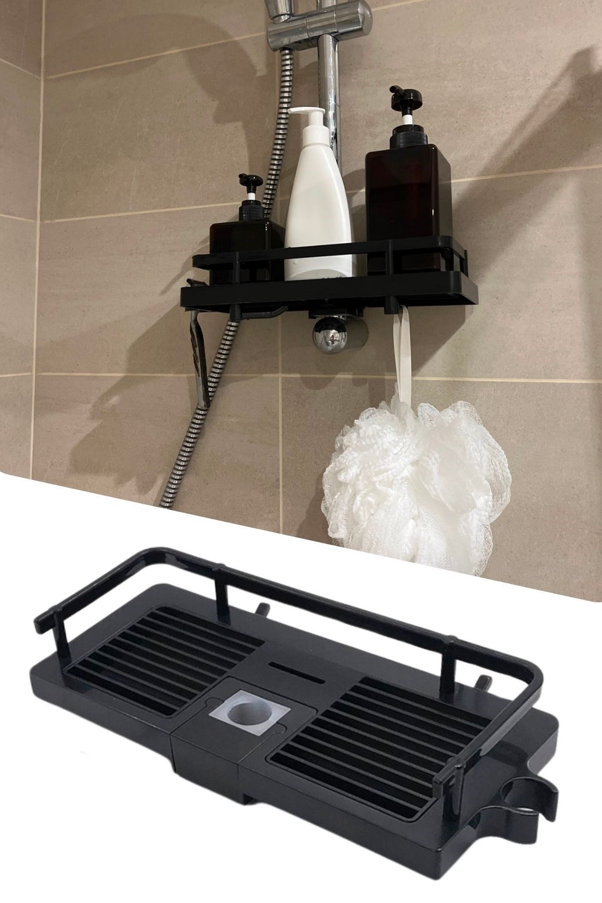 BUFFER® Duş Demirine Takılan Siyah Duş Sabunluk Organizeri Şampuan,Sabun,Lif Standı