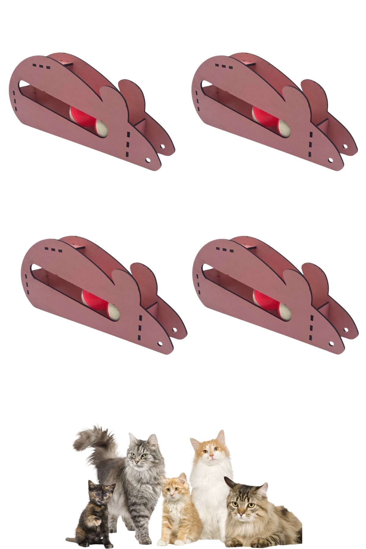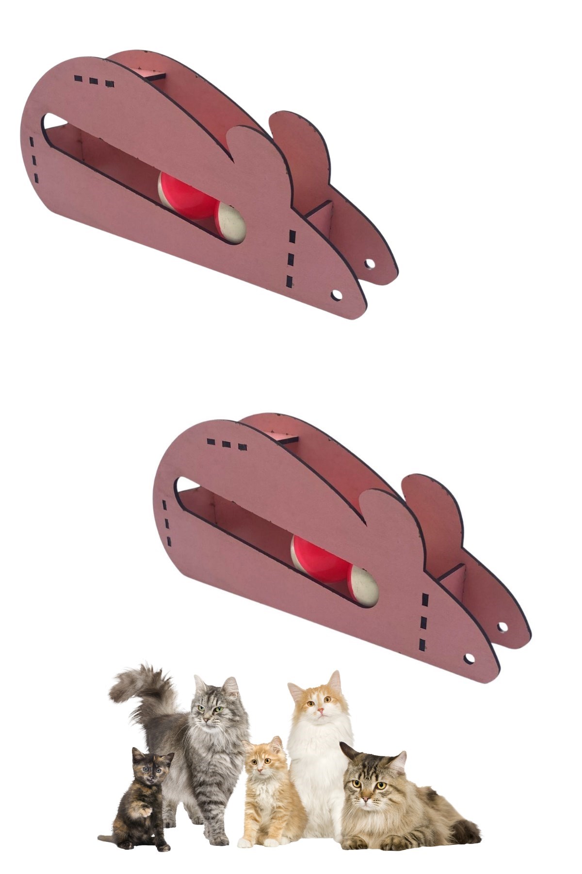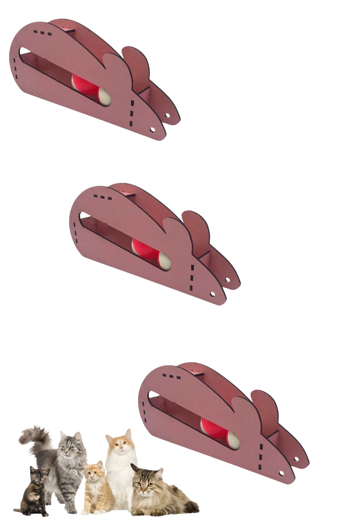Bu ahşap fare oyuncağının içinde yuvarlanan iki topun sesi kedileri meraklandırır ve dikkatlerini toplarKediler, topları oyuncaktan çıkarmaya çalışırken onunla zaman geçirirler