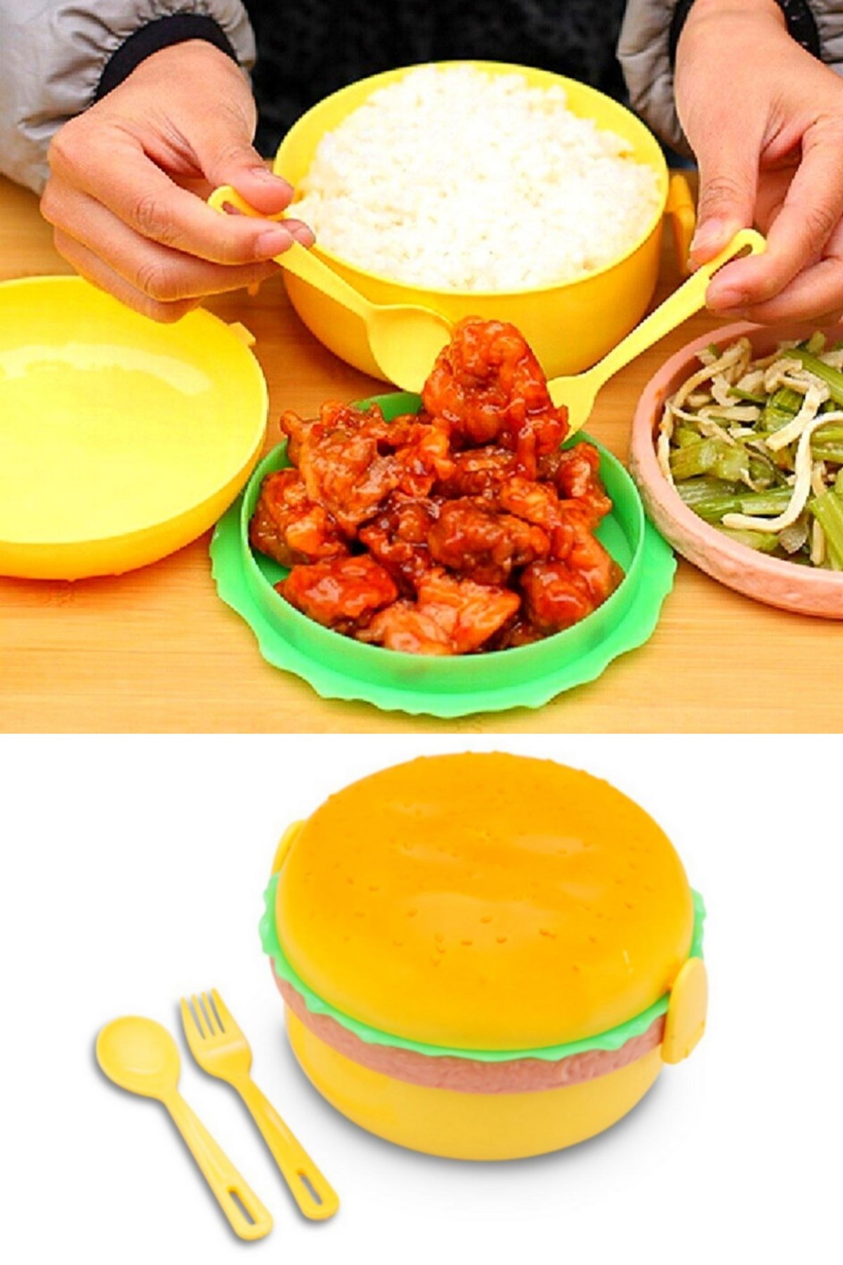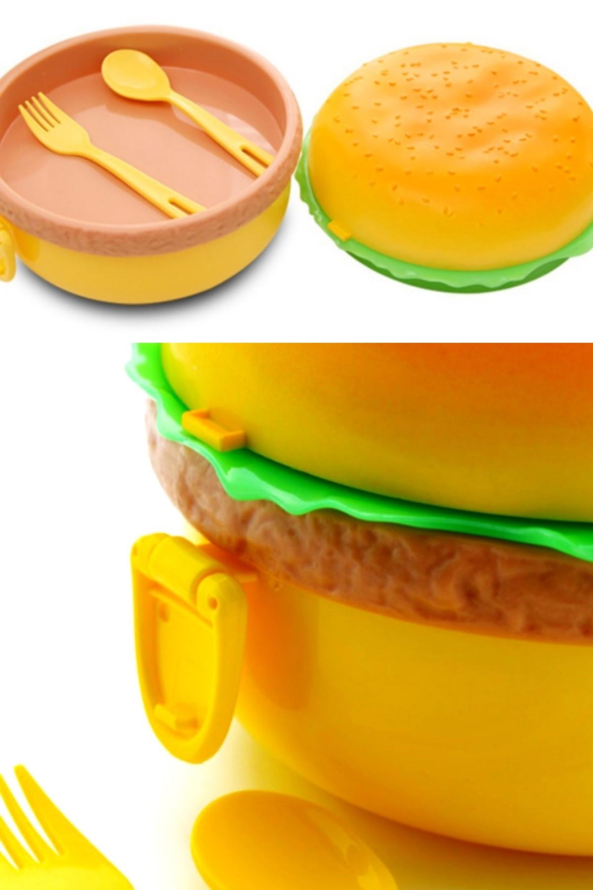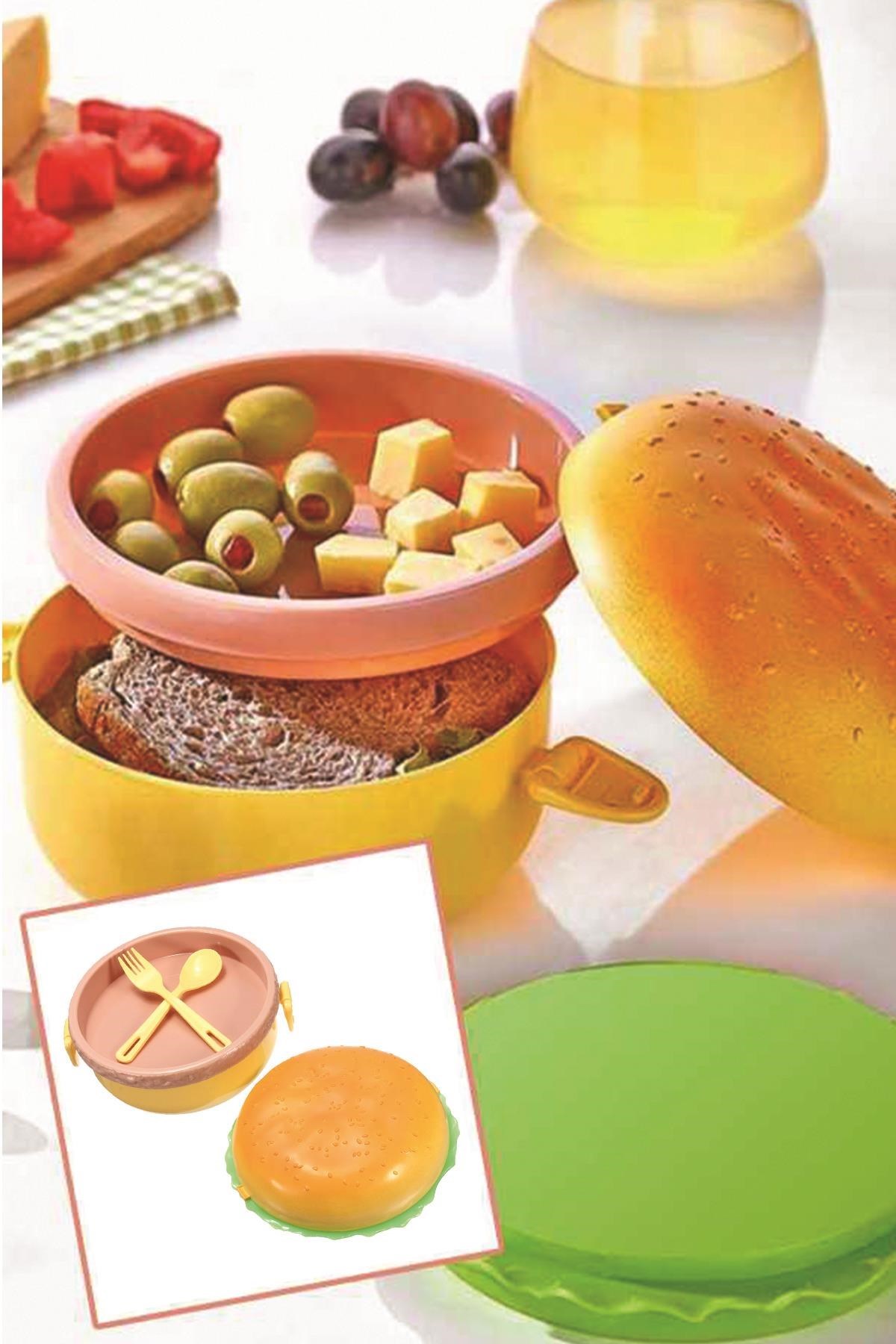 Hamburger Tasarımlı Çatal Bıçaklı Saklama ve Beslenme Kabı Kutusu